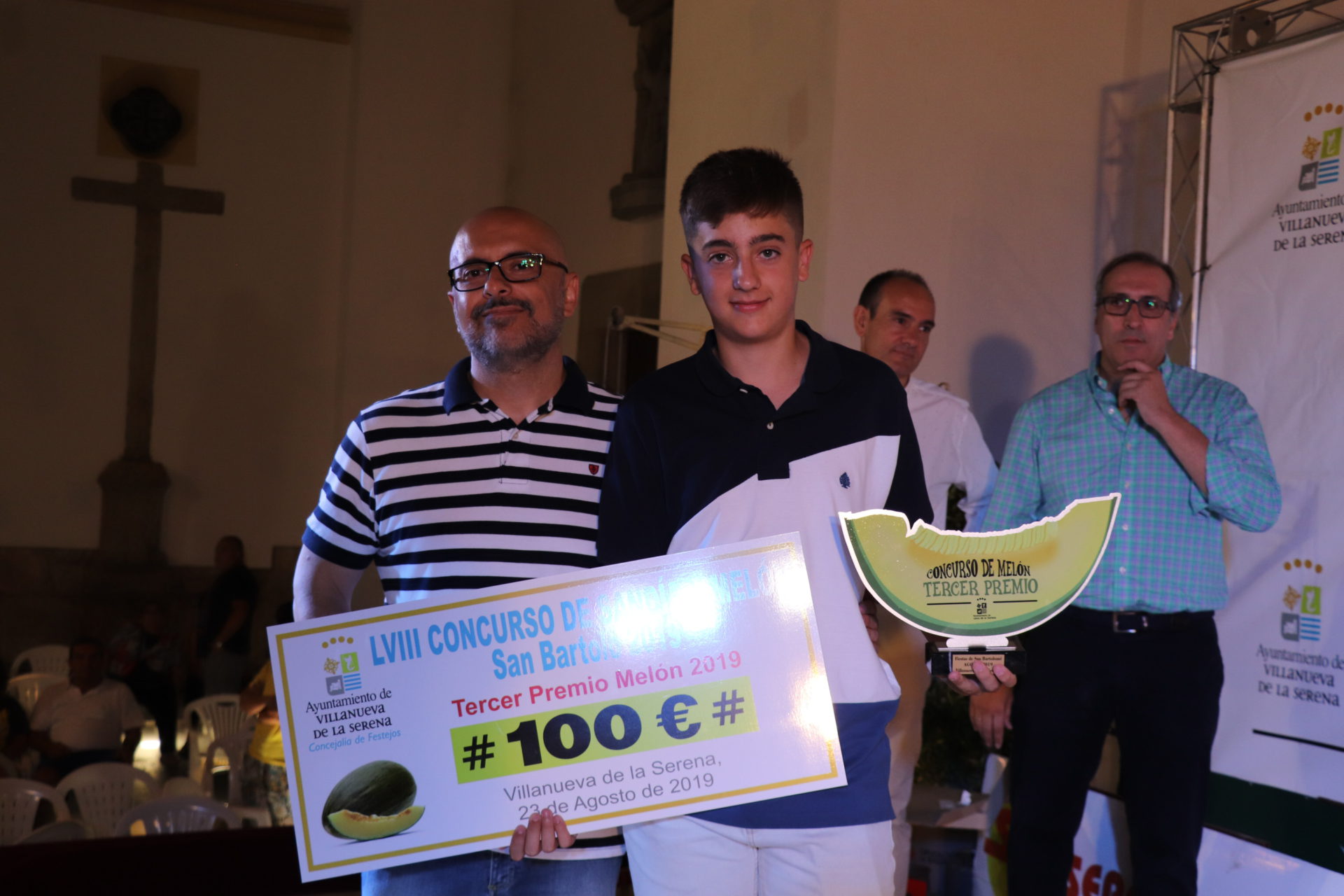 Antonio González Casillas vuelve a ganar el Concurso de Sandía y Melón “Rufino Pineda Mendoza” y lo ha hecho con una sandía que ha pesado 100 kilos superando el récord no solo de este concurso enmarcado dentro de las Fiestas de San Bartolo sino también a nivel nacional cuyos pesos estaban en 89,600 kilos y 92,200 kilos respectivamente.