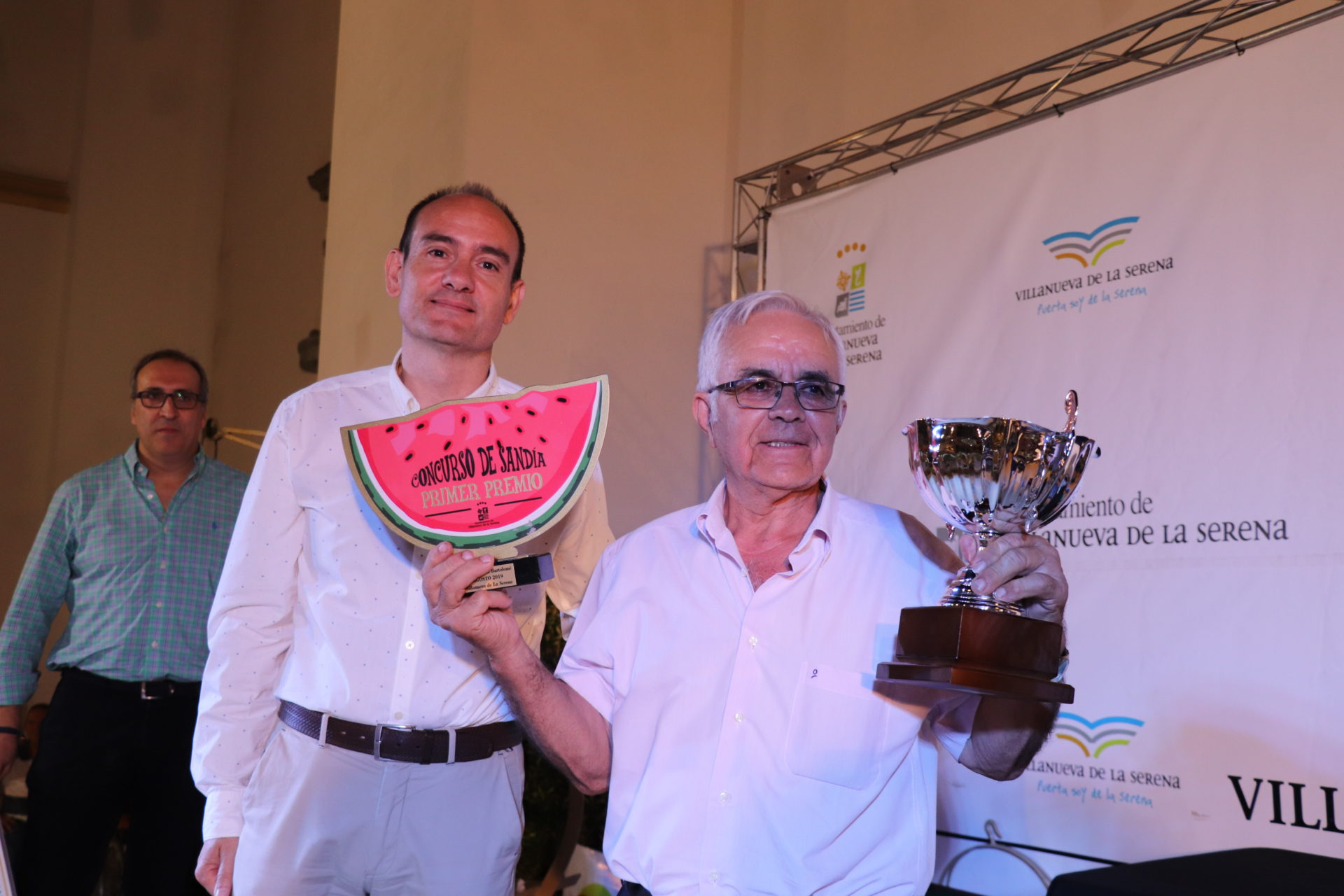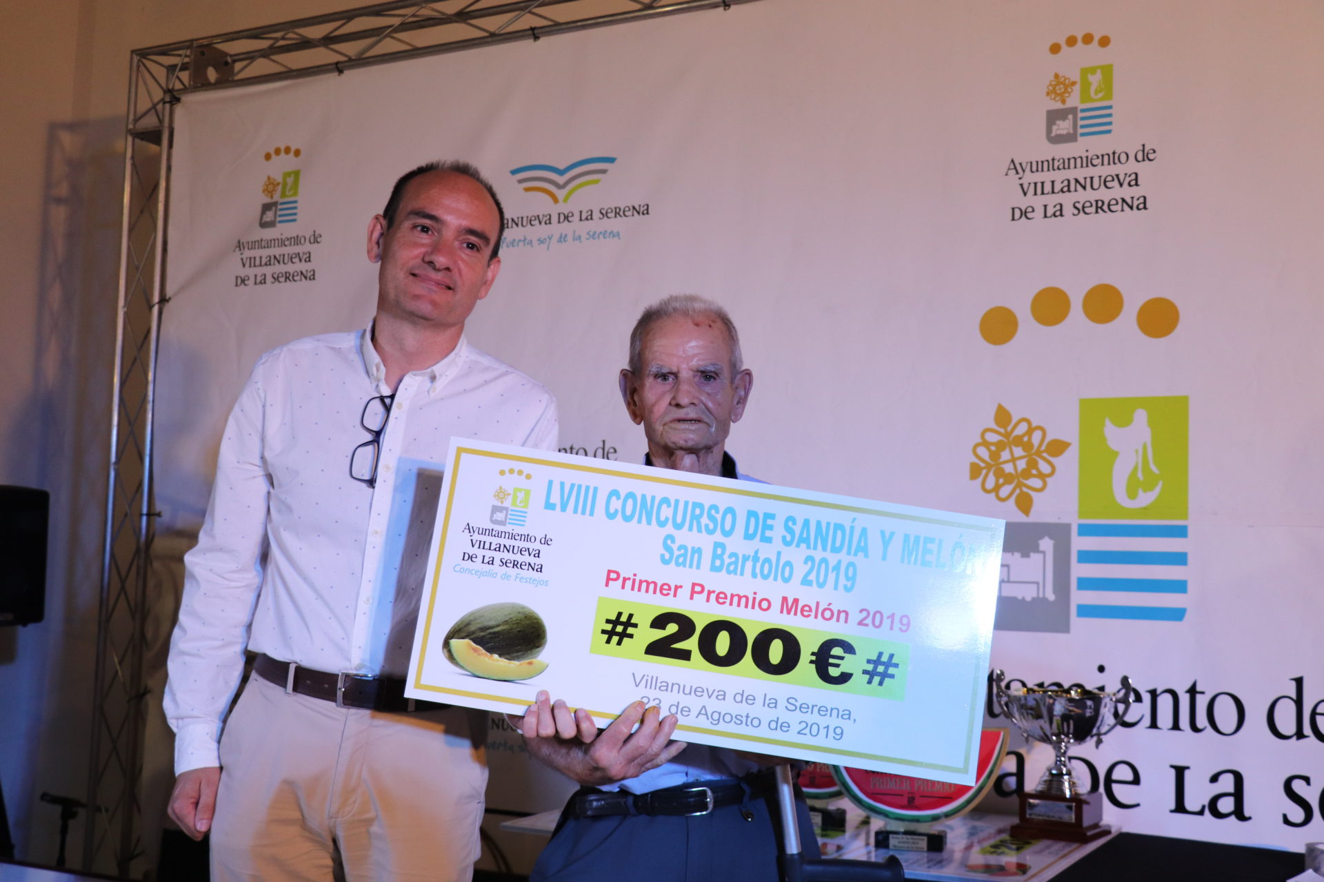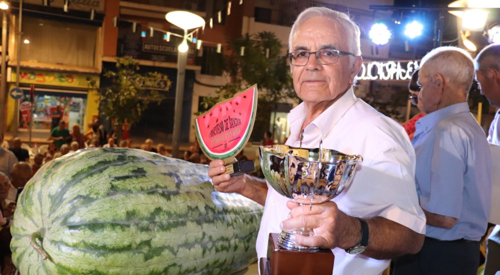 Antonio González Casillas vuelve a ganar el Concurso de Sandía y Melón “Rufino Pineda Mendoza” y lo ha hecho con una sandía que ha pesado 100 kilos superando el récord no solo de este concurso enmarcado dentro de las Fiestas de San Bartolo sino también a nivel nacional cuyos pesos estaban en 89,600 kilos y 92,200 kilos respectivamente.