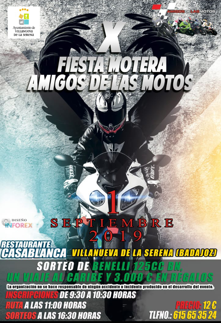 El próximo domingo día 1 de septiembre, se llevará a cabo la X Fiesta Motera “Amigos de las Motos” en la que se darán cita unos 400 moteros de distintas procedencias no solo locales y regionales sino también procedentes de la geografía nacional.