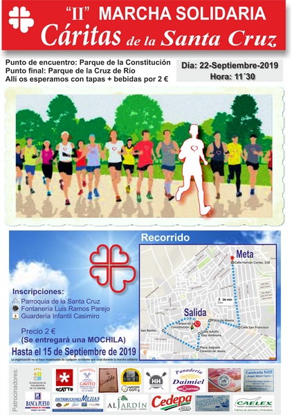 La salida será a partir de las once y media desde el Parque de la Constitución y recorrerán la Plaza de España, la calle San Benito, Paseo Castelar, Plaza del Corazón de Jesús, calle Antonio Maura, calle San Francisco, Hernán Cortés hasta llegar al parque de la Cruz aproximadamente a las doce y media. Una vez allí, se leerá un manifiesto que busca sensibilizar y concienciar sobre la importancia de ser solidario. Después, se podrán degustar una tapa con una bebida por un precio simbólico de dos euros.