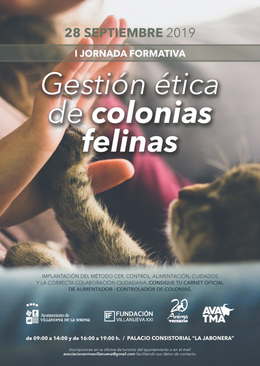 El próximo sábado 28 de septiembre se llevará a cabo la primera jornada formativa de gestión ética de colonias felinas donde se abordarán diversos temas, todos con el objetivo, de conseguir el bienestar animal. Dicha jornada se desarrollará en el Palacio Consistorial La Jabonera tanto en horario de mañana como de tarde, concretamente de 9:00 a 14:00 horas y de 16:00 a 19:00 horas.