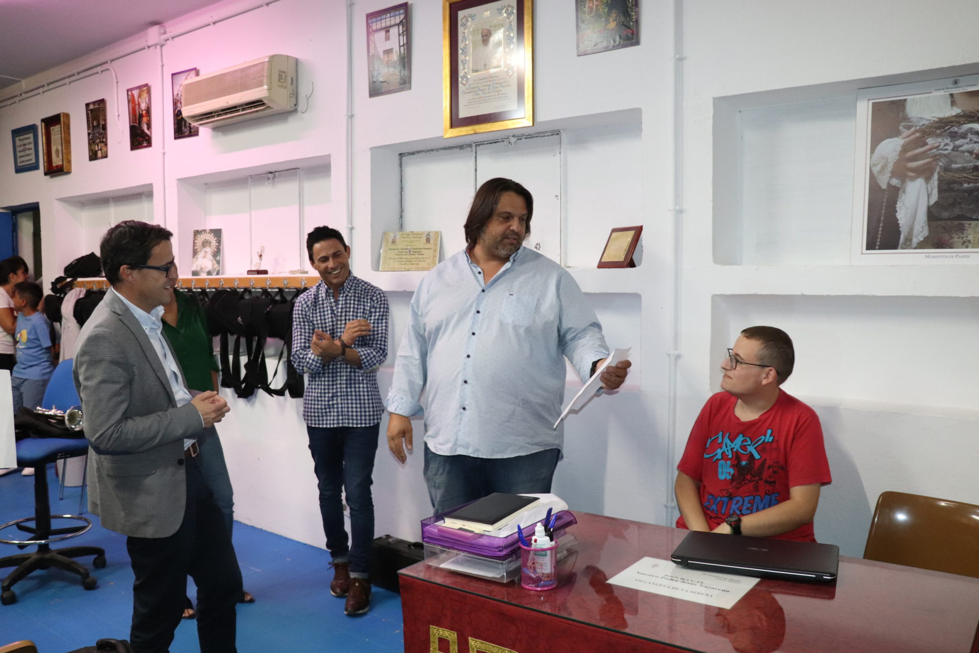 El alcalde Miguel Ángel Gallardo, visita el local de ensayos de la Banda de Cornetas y Tambores Jesús Nazareno