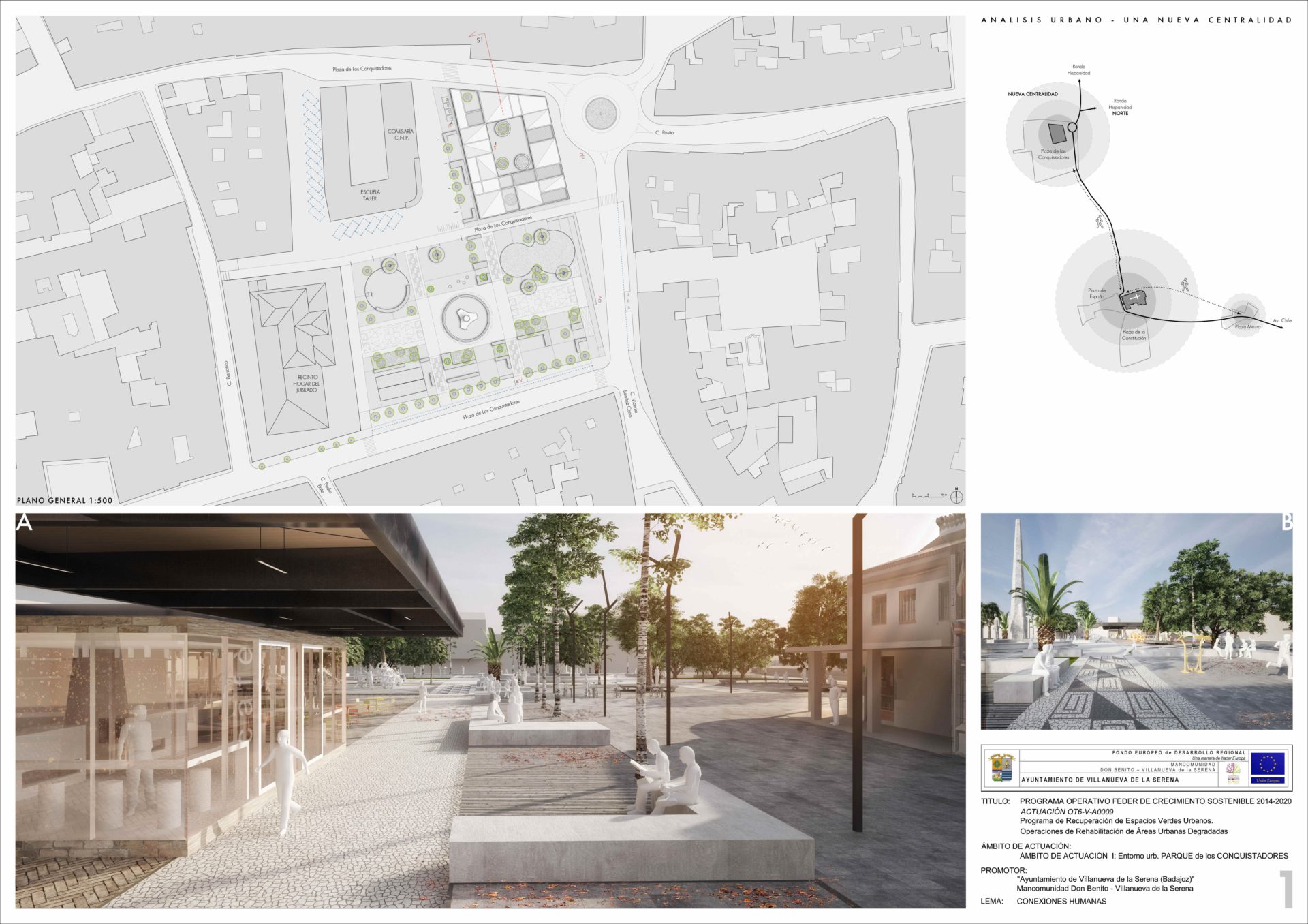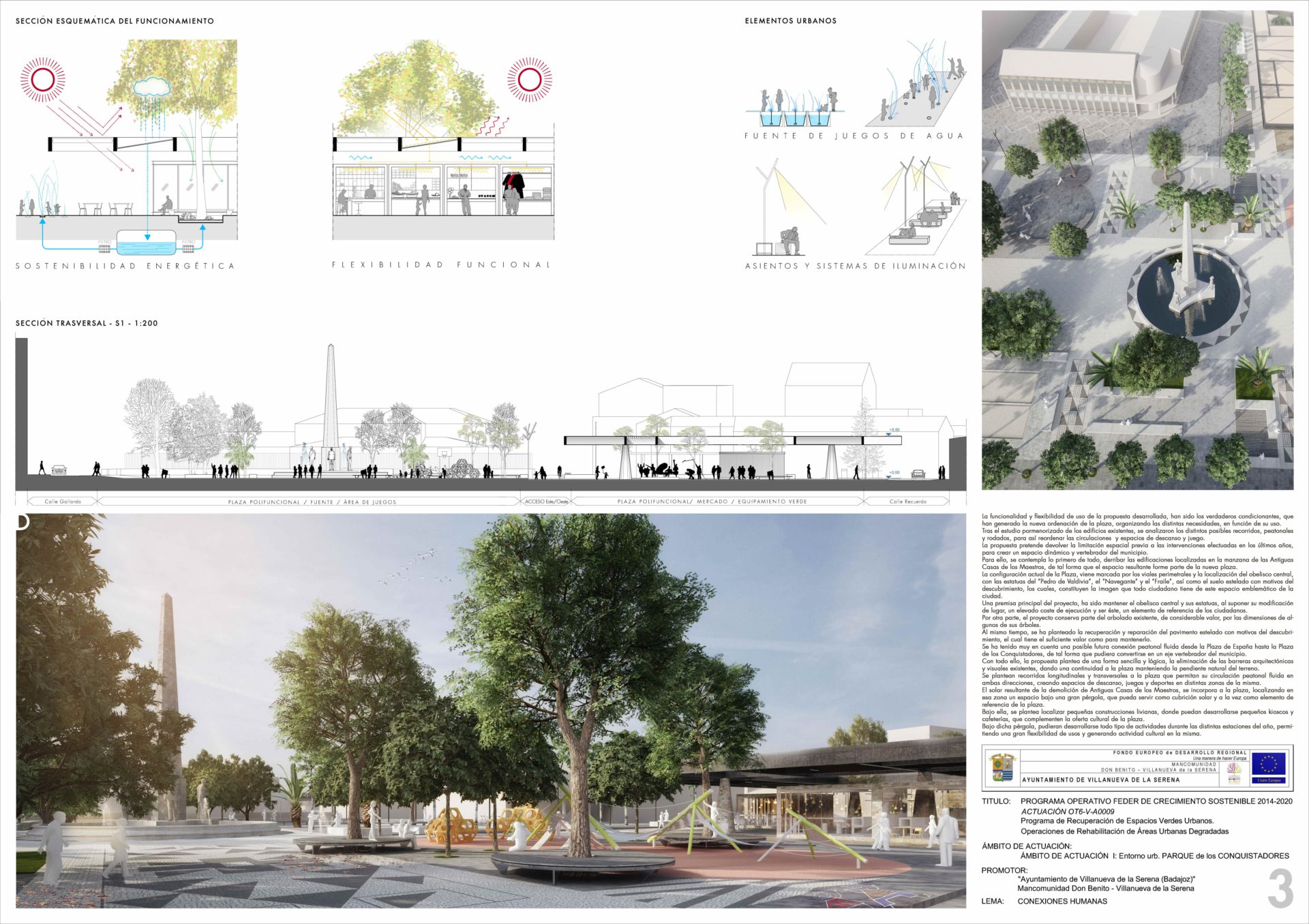 Juan Antonio Ortiz, decano del COADE y miembro del jurado, destacó que el proyecto ganador de Conquistadores “Conexiones Humanas” es “una propuesta en la que se mantiene el elemento central como es la fuente y la zona de la solería, pero al mismo tiempo es innovador en cuanto a cómo delimita el espacio urbano ya que, a partir de una pieza de nueva construcción, se garantiza la vitalidad de todo el espacio que solo tendrá éxito, añade, si es disfrutado y vivido por los ciudadanos”, expresó.