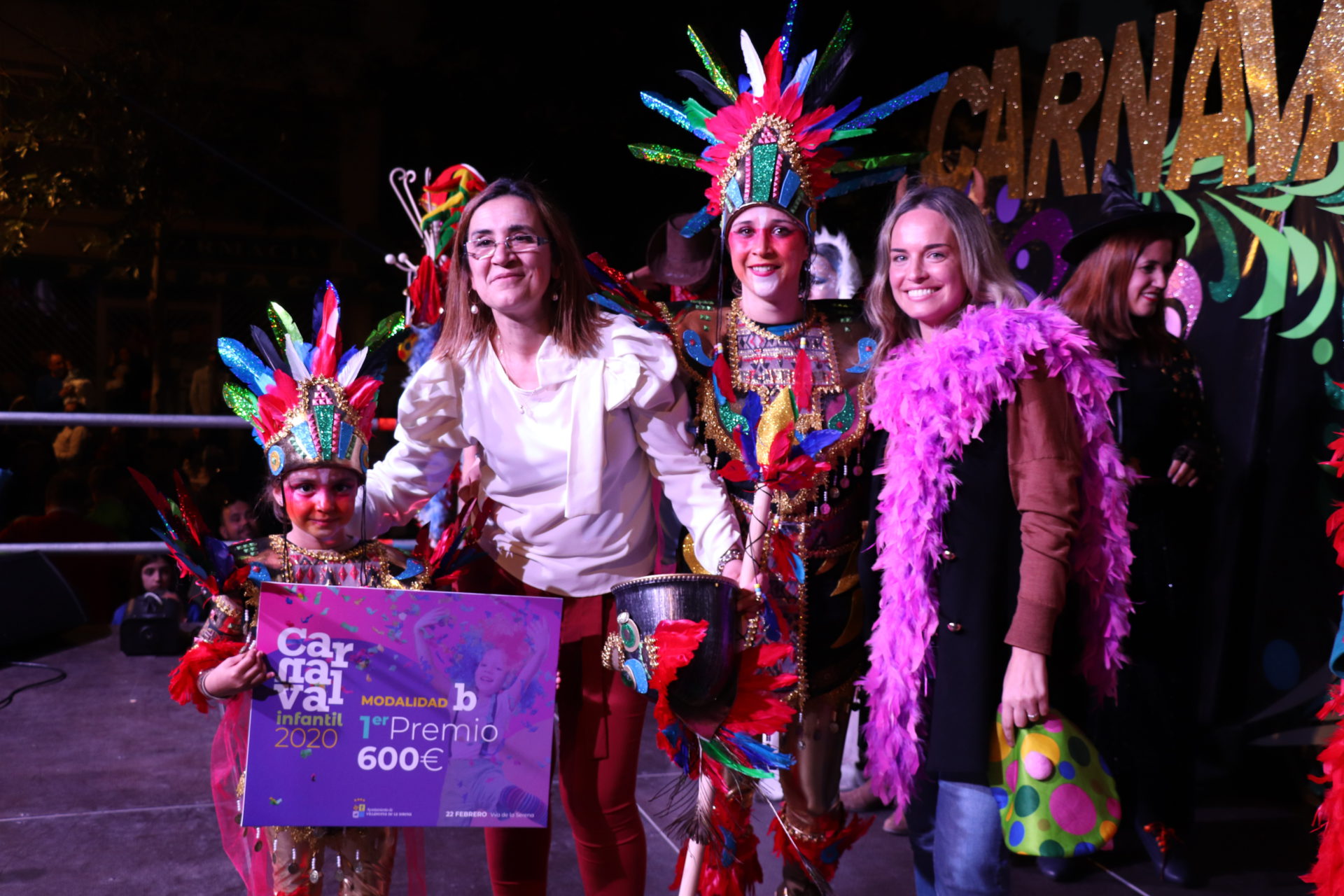 Tribu Serena, Escalera de Color, Tribu Azteca, Esencia Real, Macedonia Tropical y Los camaleones molones, son los ganadores de las tres modalidades del Carnaval Infantil 2020 que se ha celebrado este sábado 22. Un año más, las calles de Villanueva se han llenado de color con el desfile que en esta ocasión ha cambiado de día de celebración, ya que en años anteriores ha sido en viernes y este año se ha optado porque sea la tarde del sábado, y que ha contado con la participación de un total de once colectivos.