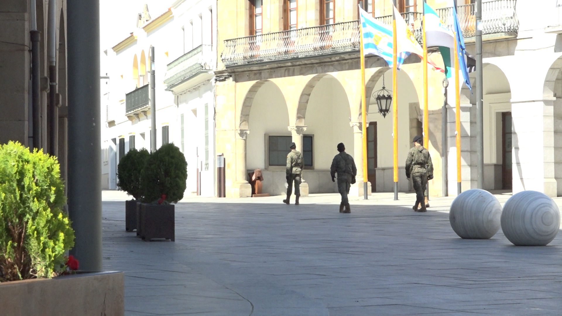 Un total de 16 efectivos de la Brigada Extremadura XI, regimiento Saboya número seis, batallón Cantabria; están realizando en el día de hoy diferentes labores de apoyo, información y disuasión junto a agentes de la Policía Local, de Policía Nacional y Guardia Civil. Los soldados están en diferentes puntos de la ciudad realizando estas tareas dentro del #EstadoDeAlarma.