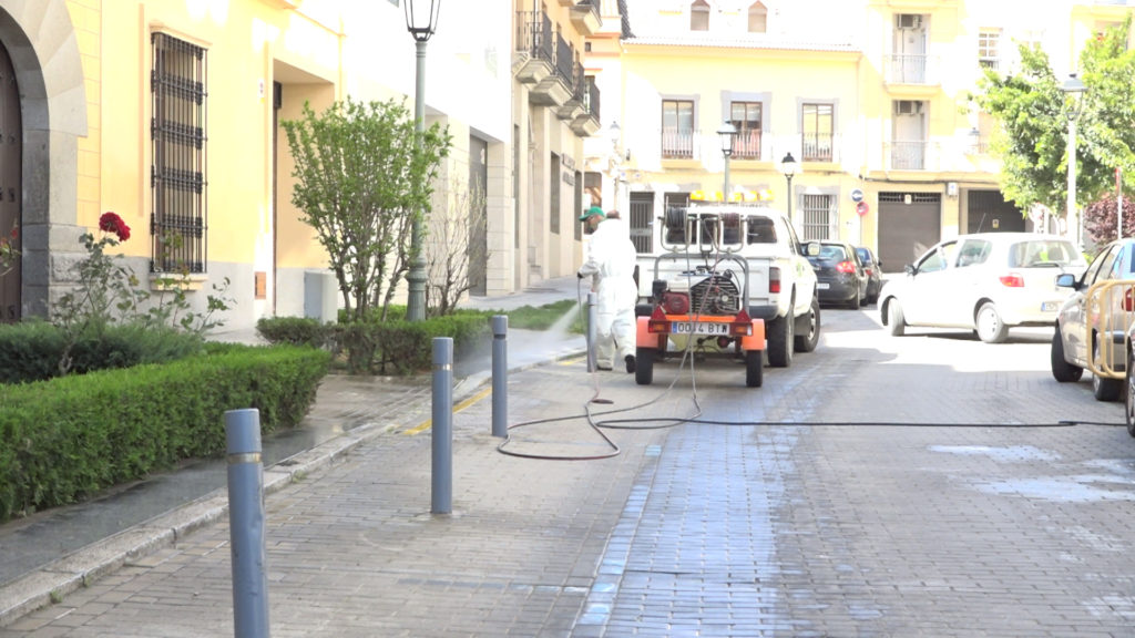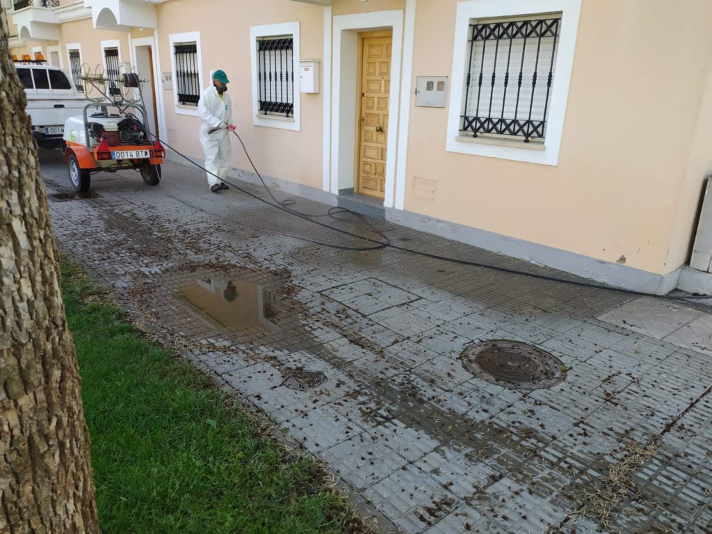 Desde hace varias semanas, los operarios de Urbaser S.A realizan a diario, las labores de desinfección por todas las calles de la ciudad, haciendo especial incidencia en los dos centros de salud, así como en espacios donde se puede producir mayor concentración de personas. A esto se le añade también, el mobiliario urbano como papeleras, señales de tráfico, contenedores entre otros, para los que utilizan una hidrolimpiadora.