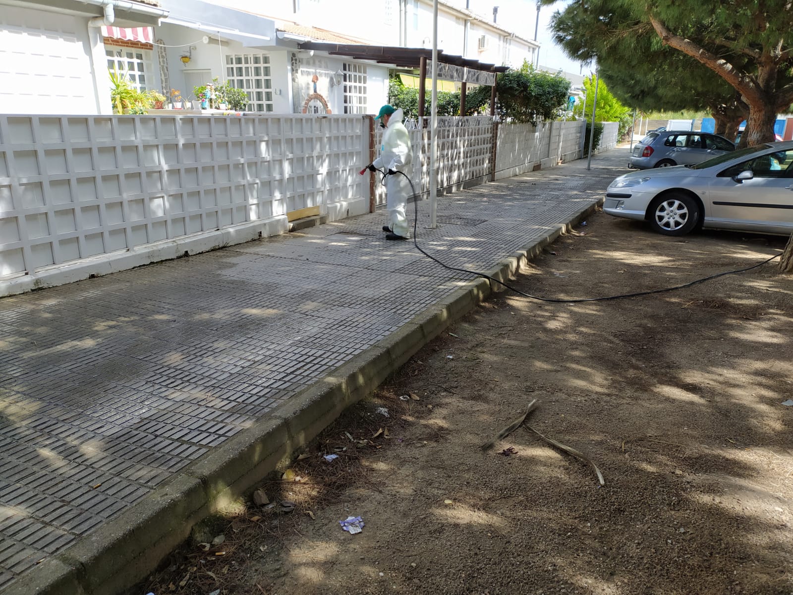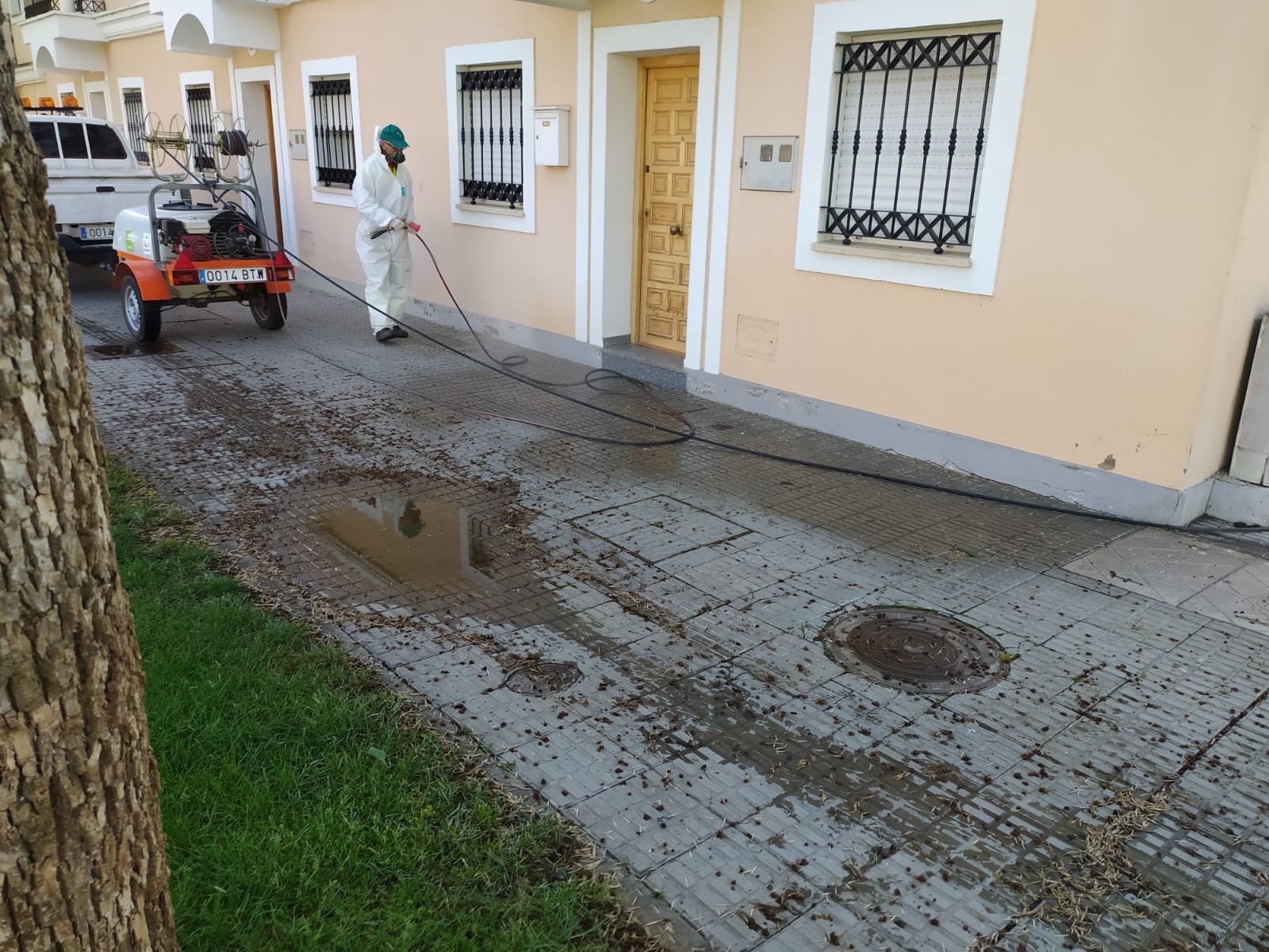 Para la desinfección, utilizan dos camiones cisternas con capacidad de ocho mil litros cada una, un carro de cura enganchado a un vehículo compuesto por dos pistolas para pulverizar, así como un vehículo de dos ruedas para desinfectar aquellas calles donde no es posible acceder con el camión. Utilizan soluciones de hipoclorito sódico, tanto líquido como en pastillas, un producto con efecto viricida que sigue las recomendaciones de las autoridades sanitarias.