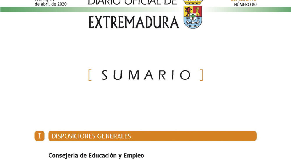 El Diario Oficial de Extremadura D.O.E. del lunes 27 de abril de 2020, recoge dicho DECRETO-LEY 8/2020, de 24 de abril, por el que se adoptan medidas urgentes y extraordinarias para el mantenimiento y recuperación del empleo frente a la crisis ocasionada por el COVID-19.