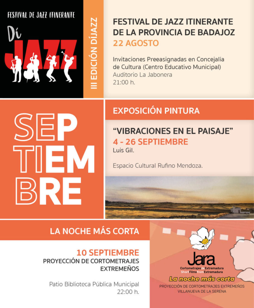 Finaliza el mes de agosto, con la música como protagonista. El día 22 el Palacio Consistorial La Jabonera acogerá la tercera edición del Festival de Jazz Itinerante “Dijazz” organizado por la Diputación de Badajoz.
