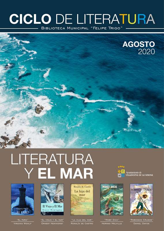 La biblioteca Felipe Trigo incorpora nuevos títulos para sus lectores en este mes de agosto donde el ciclo de literatura está destinado tanto a la literatura como al mar con cinco nuevas incorporaciones. Se tratan de “Al Faro” de Virginia Woolf, “El viejo y el mar” de Ernest Hemingway, “La hija del mar” de Rosalía de Castro, “Moby Dick” de Herman Melville y “Robinson Crusoe” de Daniel Dafoe.