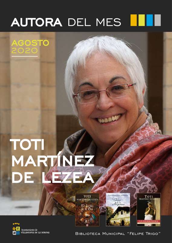 En esta ocasión, Toti Martínez de Leza, es la autora del mes de agosto. Se trata de una novelista española que escribe en castellano y en euskera con especial interés por el medievo europeo, por la historia y las tradiciones españolas. Además de ser novelista es traductora de inglés, francés y alemán, así como guionista de televisión, actriz y fundadora del grupo de teatro “Kukubiltxo”.