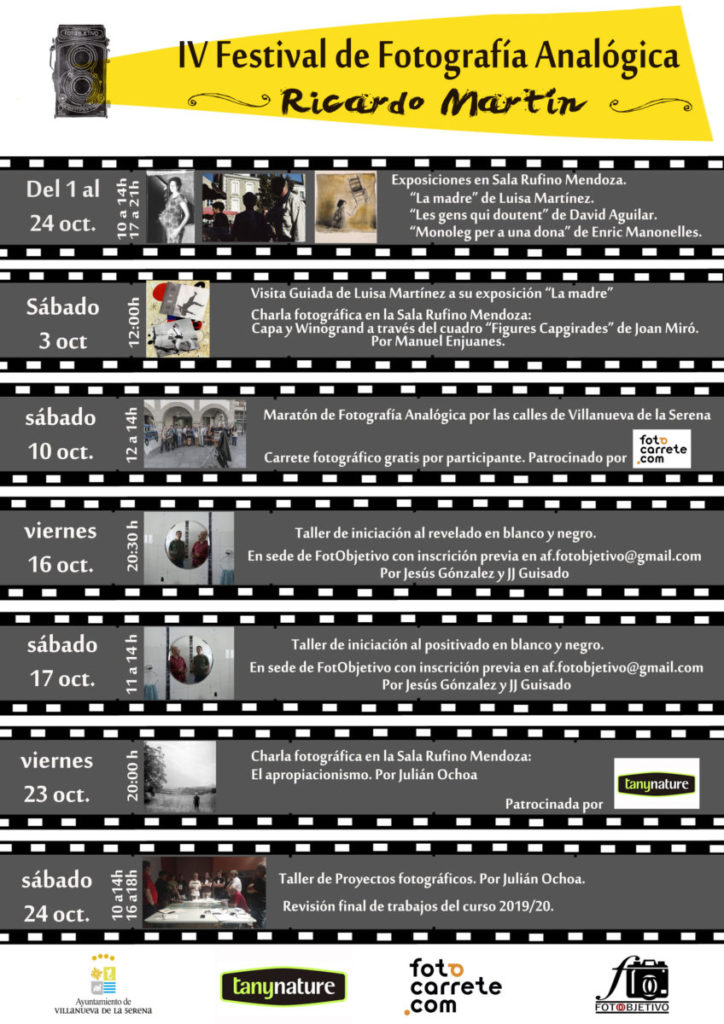 Por cuarto año consecutivo, la asociación FotObjetivo celebra el festival de fotografía analógica “Ricardo Martín” que arrancará el próximo 1 de octubre hasta el día 24. Durante cuatro fines de semana, se desarrollarán varias actividades como demostraciones de fotografías analógicas, charlas, talleres, un maratón y tres exposiciones.