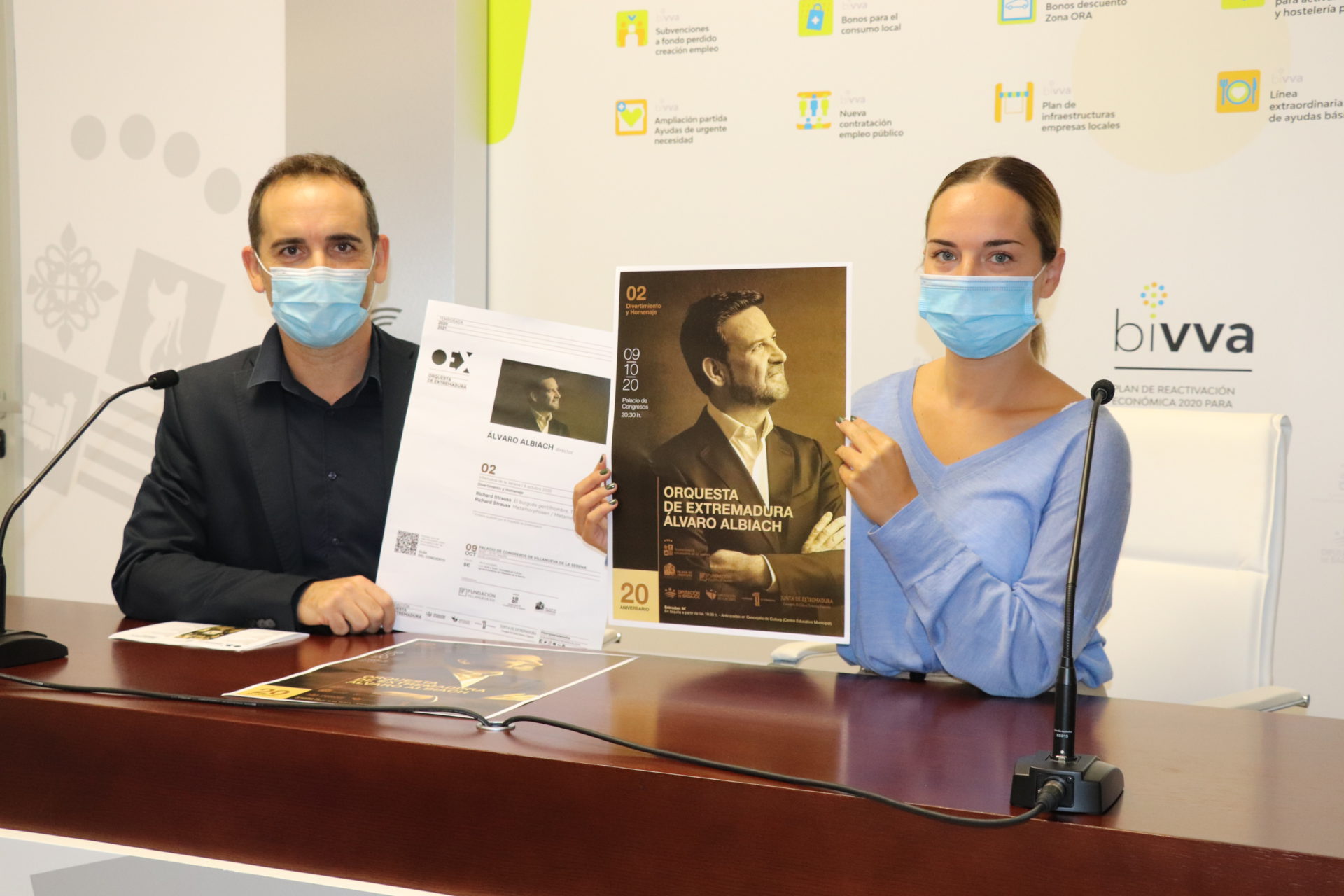 La Orquesta de Extremadura reanuda su actividad en el palacio de congresos con un concierto que se llevará a cabo el 9 de octubre a las 20:30 horas. Ana Mansanet, concejal de Cultura señala que se trata de un año importante para la orquesta porque es su 20 aniversario y la despedida de su director artístico Álvaro Albiach que lleva al frente más de una década. Una orquesta, señala Mansanet, que ofrece música de primera calidad y difusora de la cultura musical en los escenarios de la que además, Villanueva de la Serena es sede.