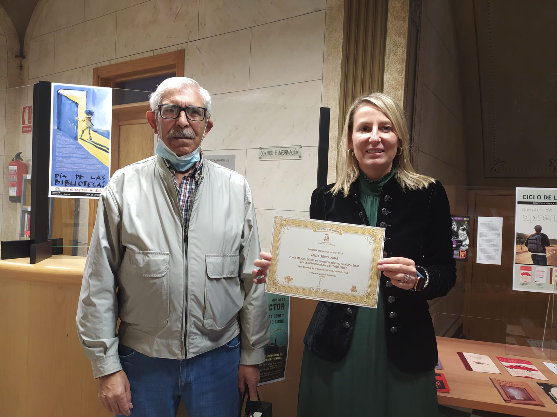 Con motivo del Día de la Biblioteca que se celebra el 24 de octubre, desde la Biblioteca Felipe Trigo, se han desarrollado algunas actividades para conmemorar este día. Este viernes 23 de octubre, se han hecho entrega de un diploma y un lote de libros a los mejores lectores tanto en la categoría de adulto como de infantil, concretamente en esta ocasión, han recaído en Ángel Sierra que ha leído hasta ahora un total de 58 libros y en Rubén Morcillo respectivamente, que ha leído un total de 37 libros.