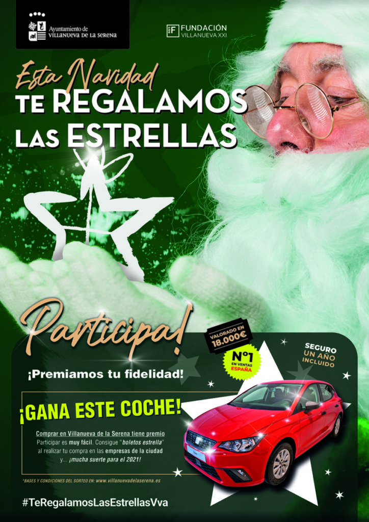 Un Seat Ibiza es el premio que una persona que compre en cualquiera de los 147 establecimientos de la ciudad adheridos a la campaña “Esta Navidad te regalamos las estrellas”, ganará el próximo 6 de enero. Para ello, el número de su papeleta deberá coincidir con el número premiado en el sorteo extraordinario de El Niño.