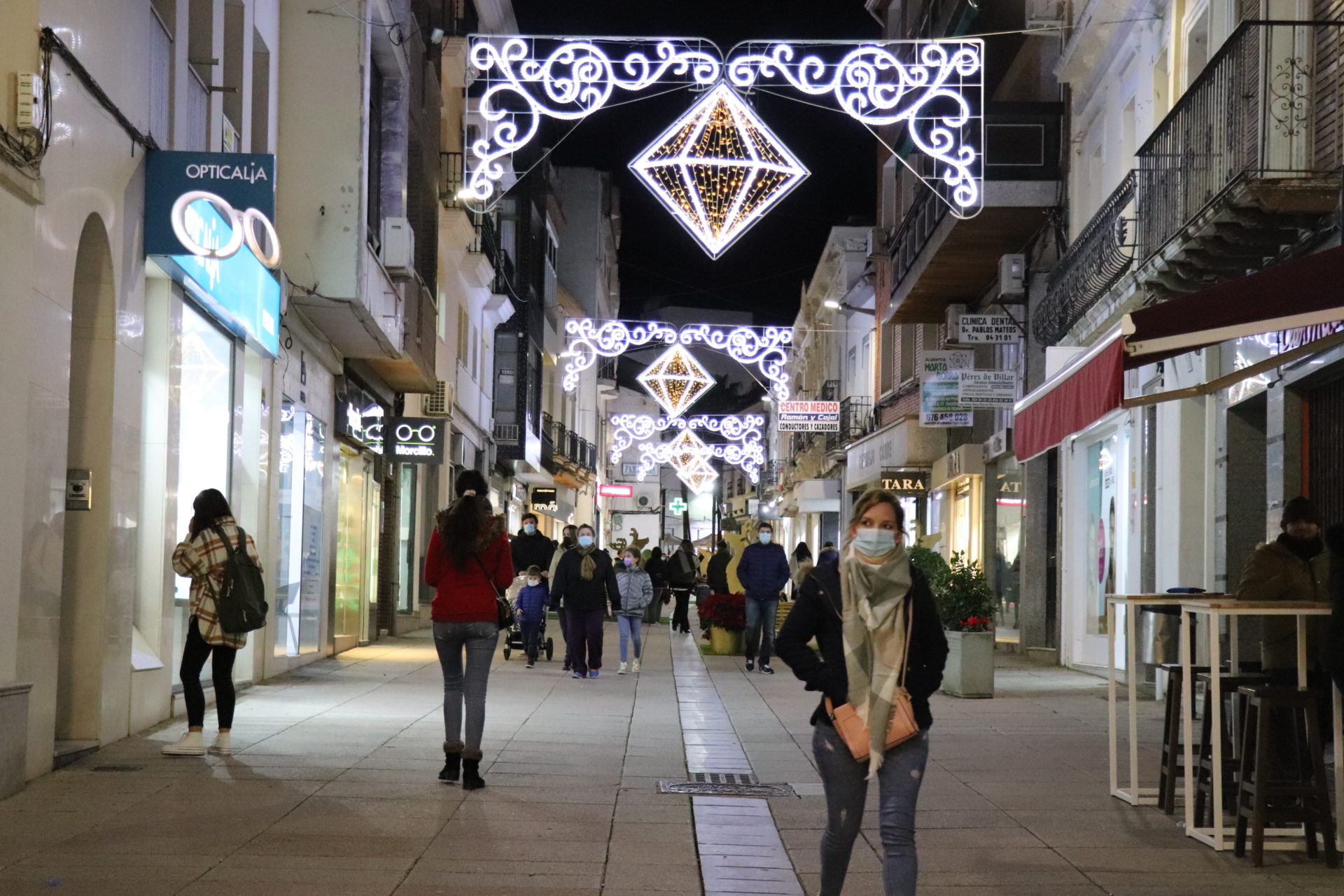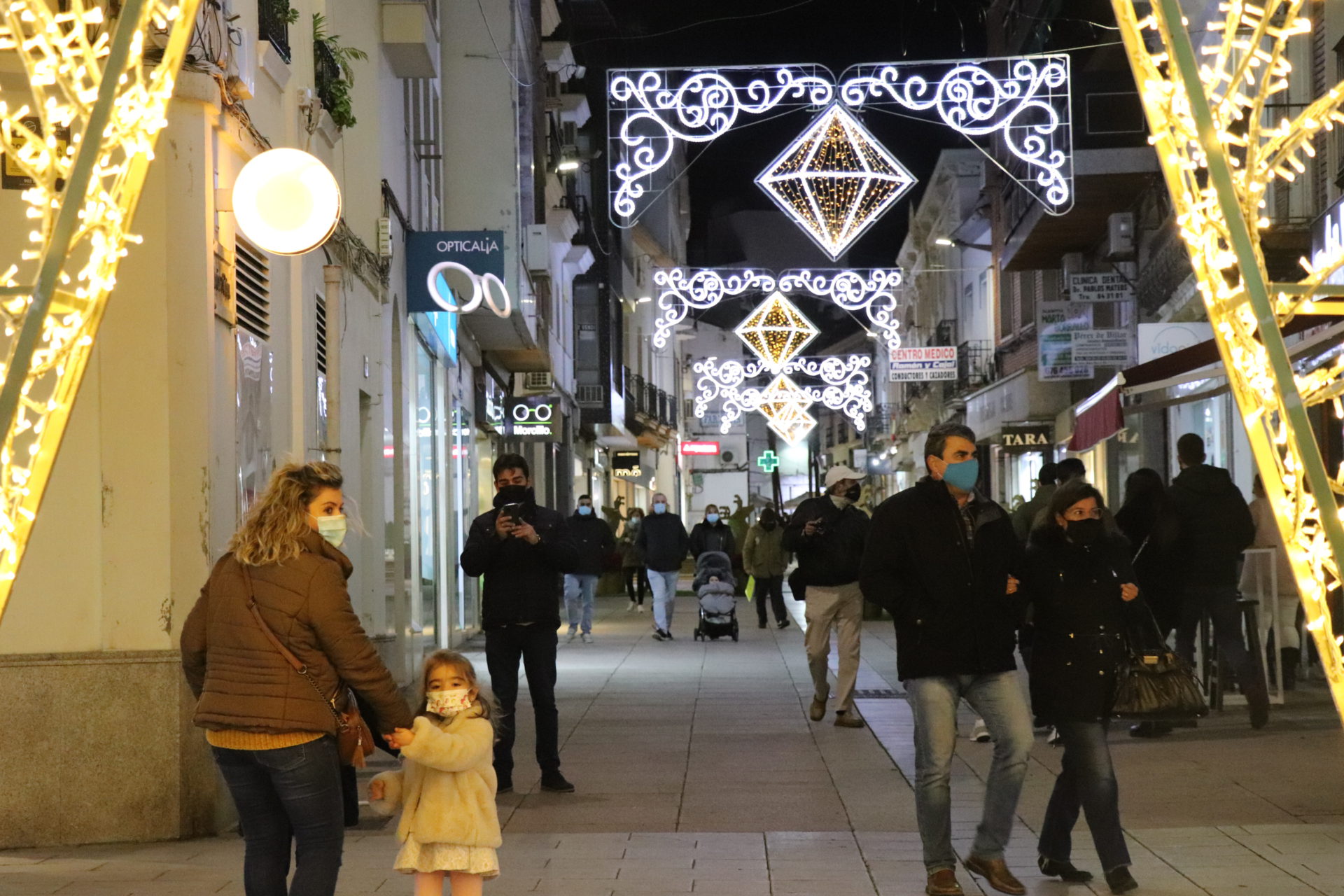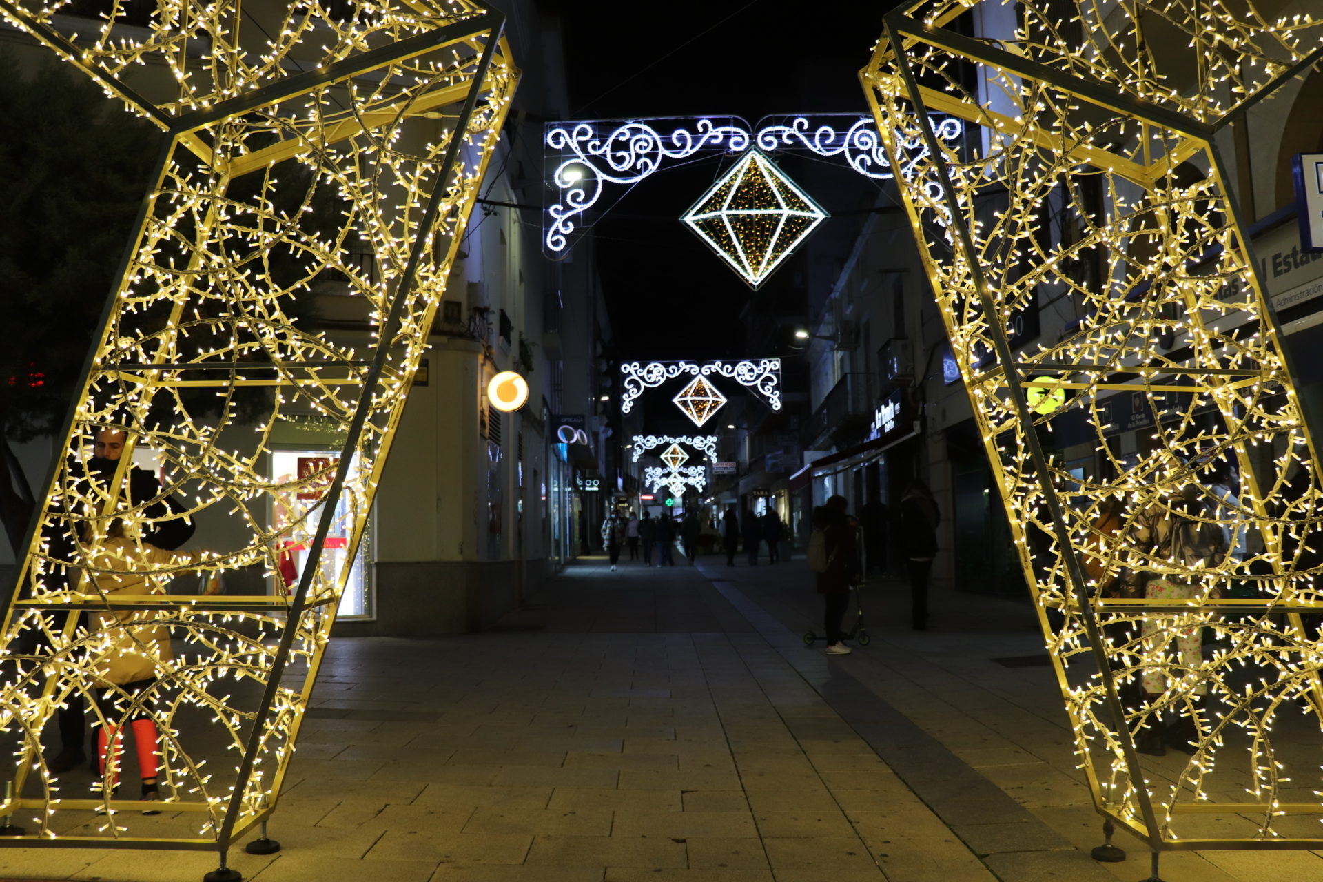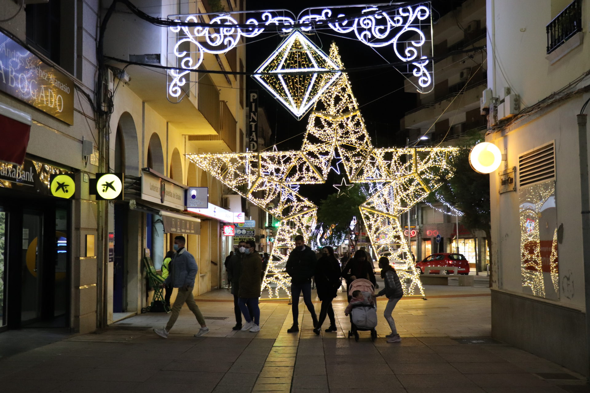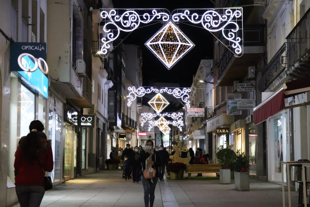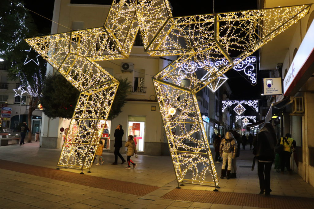 La plaza de España cuenta con un cono de 24 metros transitables además de decoración en las fachadas y los balcones de los edificios, con guirnaldas. En el parque de la Constitución hay la “Ciudad de la Navidad”, un laberinto de luces además de música navideña y animación en pantalla. Las avenidas de Hernán Cortés y San Francisco estrenan nueva decoración con 29 arcos navideños de gran formato además de un motivo diseñado para el cruce. Los árboles también están decorados, al tiempo que toda la vía tiene motivos tridimensionales con luz parpadeante. La calle Ramón y Cajal combina la iluminación con elementos decorativos y también naturales además de una gran estrella que se ubica en el inicio de la calle junto a la plaza de Las Pasaderas.