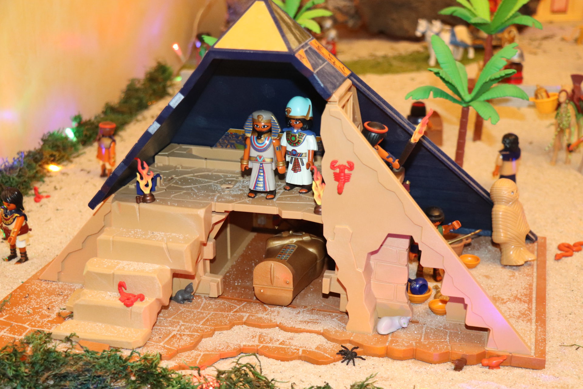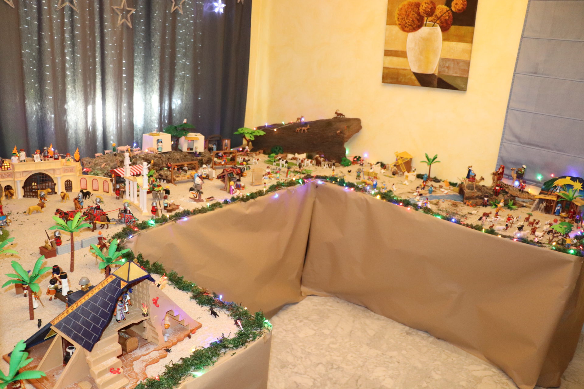 Un total de 800 piezas de Playmobil, son las que componen el Portal de Belén que un año más ha elaborado Daniel Amador. Este joven villanovense de 12 años, ha recreado diferentes escenas unificadas en un mismo lugar, en su casa. Sus Majestades Los Reyes Magos de Oriente dirigiéndose al portal, una escena de Egipto, otra de Roma, el herrero, la lavandera o la Estrella de Belén, son solo algunos de los elementos que se pueden visualizar.