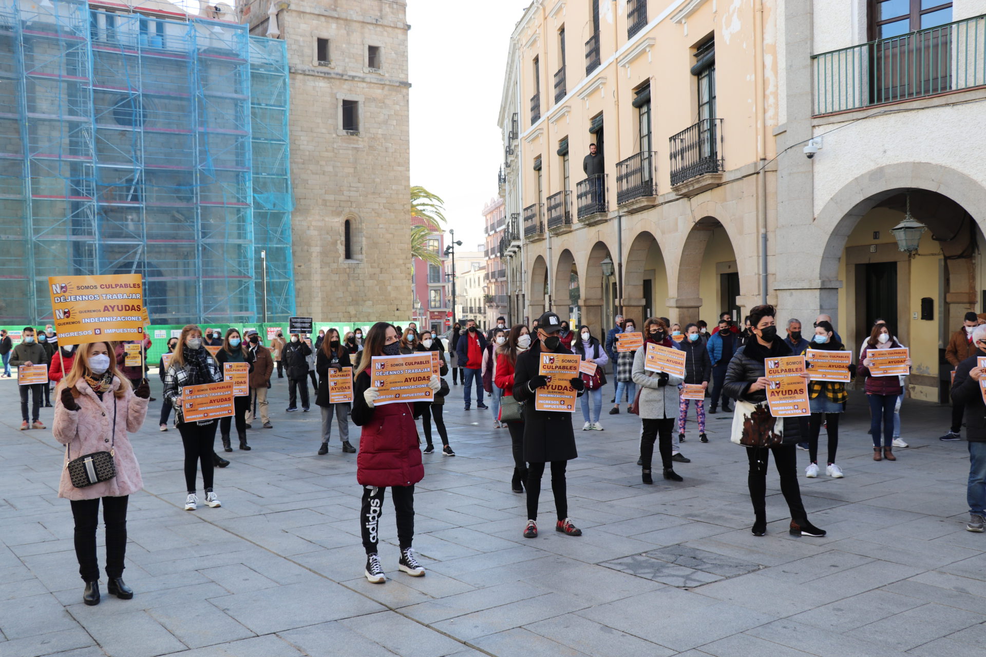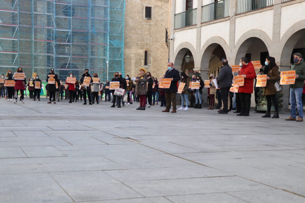 Con cinco minutos de silencio por el cierre de sus negocios, representantes del comercio, la hostelería y las pequeñas y medianas empresas, se han concentrado este martes 19 en la plaza de España. Una concentración con la que han querido protestar contra el cierre de establecimientos que la Junta de Extremadura estableció mediante decreto el pasado 7 de enero.