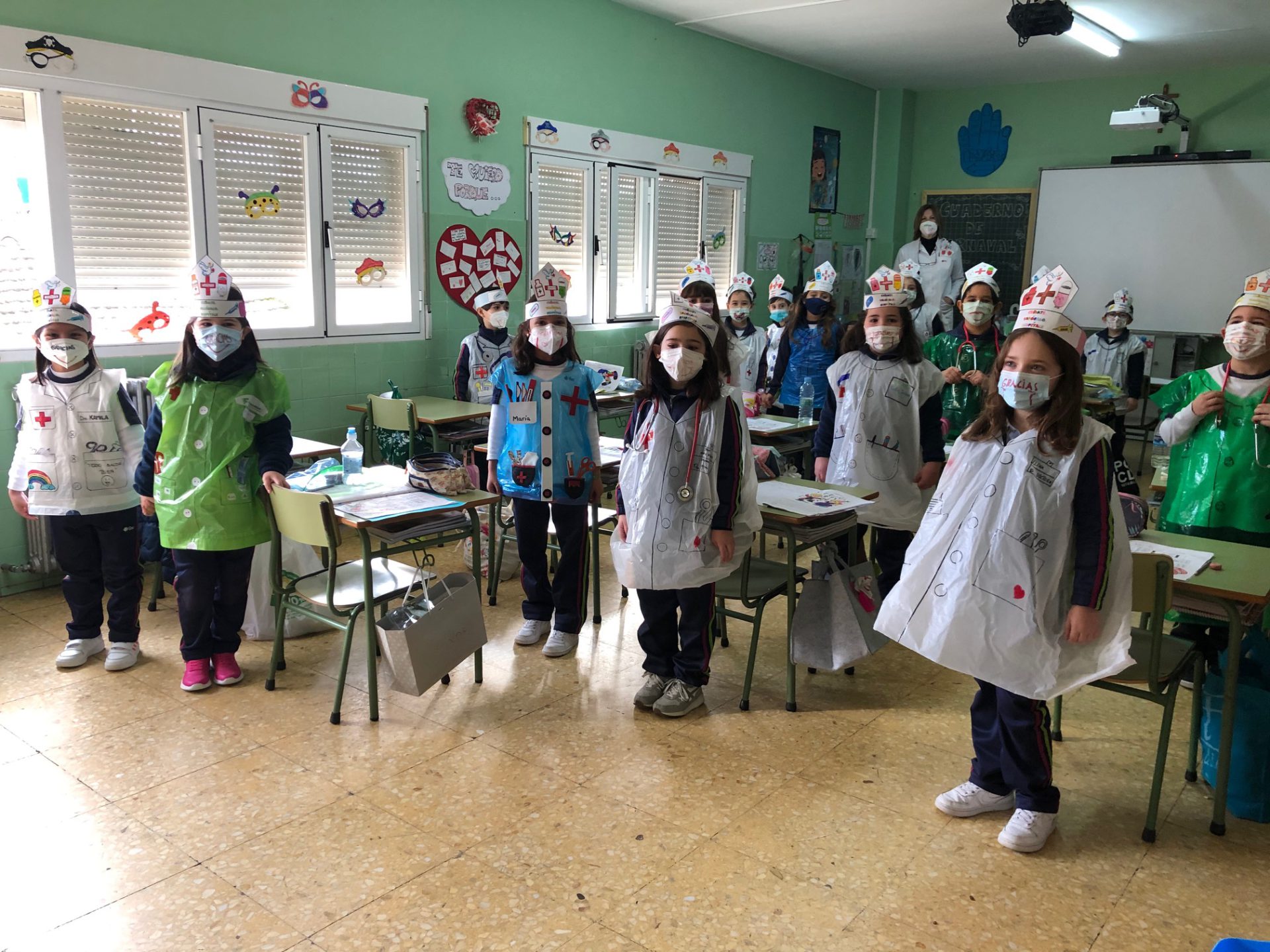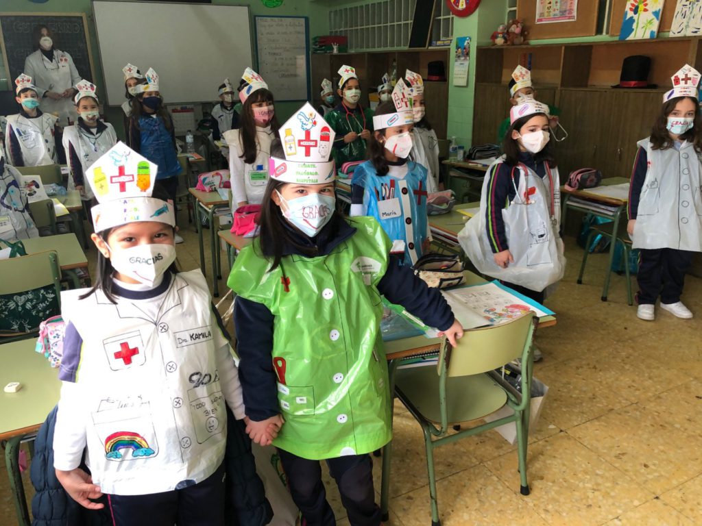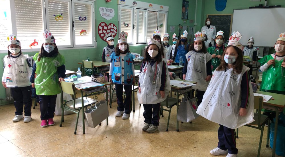 Por otro lado, se han disfrazado de sanitarios con material totalmente reciclado y elaborados por ellos mismos, poniendo especial incidencia, en la decoración de cada una de sus mascarillas. Un gesto de agradecimiento a la labor que llevan realizando desde que comenzó la pandemia el pasado año.