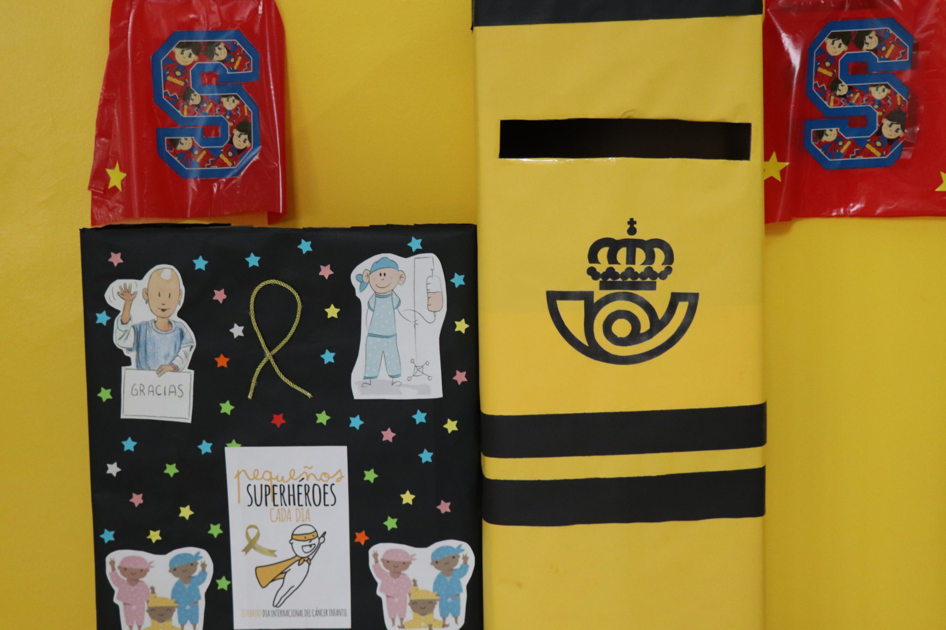 María Isabel Pino, maestra del centro señala que, desde las asignaturas de música y religión, perfilaron varias acciones, entre ellas, la realización de un programa de radio que se emite hoy lunes 15 de febrero, Día Internacional del Cáncer Infantil. Además, de la elaboración de una capa de superhéroe y mensajes como “No tengáis miedo”, “No puedes rendirte”, “Sacad fuerzas”, “Estamos aquí para apoyaros”, “Debéis seguir adelante”, “Si el tratamiento te resulta muy duro, tienes que ser valiente” o “Ganarás la batalla”, que recibirán hoy, los pequeños que estén recibiendo su tratamiento en el Hospital Materno Infantil de Badajoz.