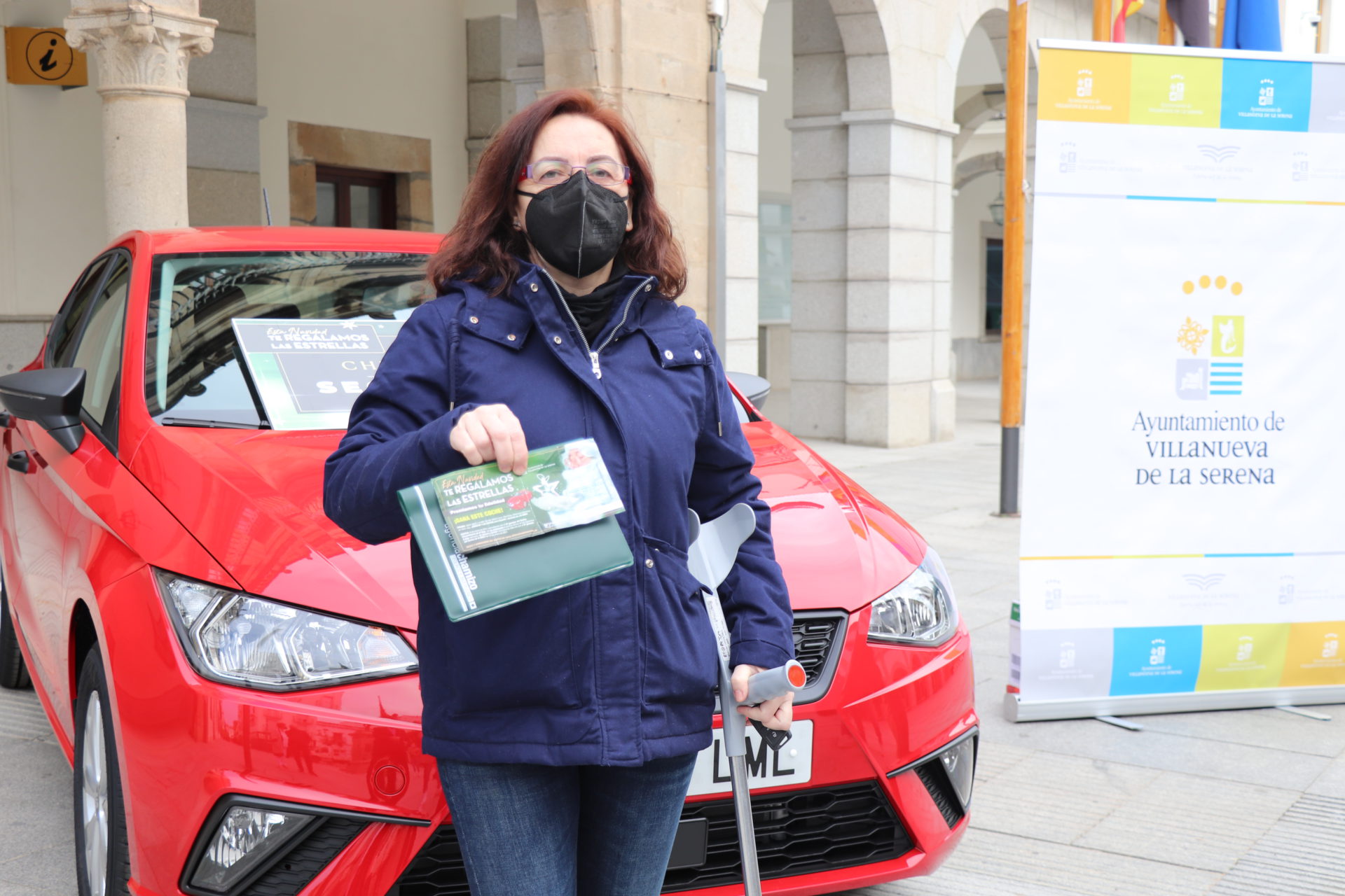 Manuela Herrera Bravo, recibe hoy lunes 1 de marzo, el premio de la campaña “Esta navidad te regalamos las estrellas”, un coche Seat Ibiza con un año de seguro incluido. Una papeleta que adquirió tras realizar una compra en la carnicería Patricio Pérez, uno de los 147 establecimientos que participaron en la campaña que comenzó el pasado 5 de diciembre. En ella participaban empresas de todos los sectores, desde el textil a calzado, belleza, hostelería, servicios profesionales, automoción, financiero, alimentación, formación, suministros, mobiliario u hogar, entre otros.