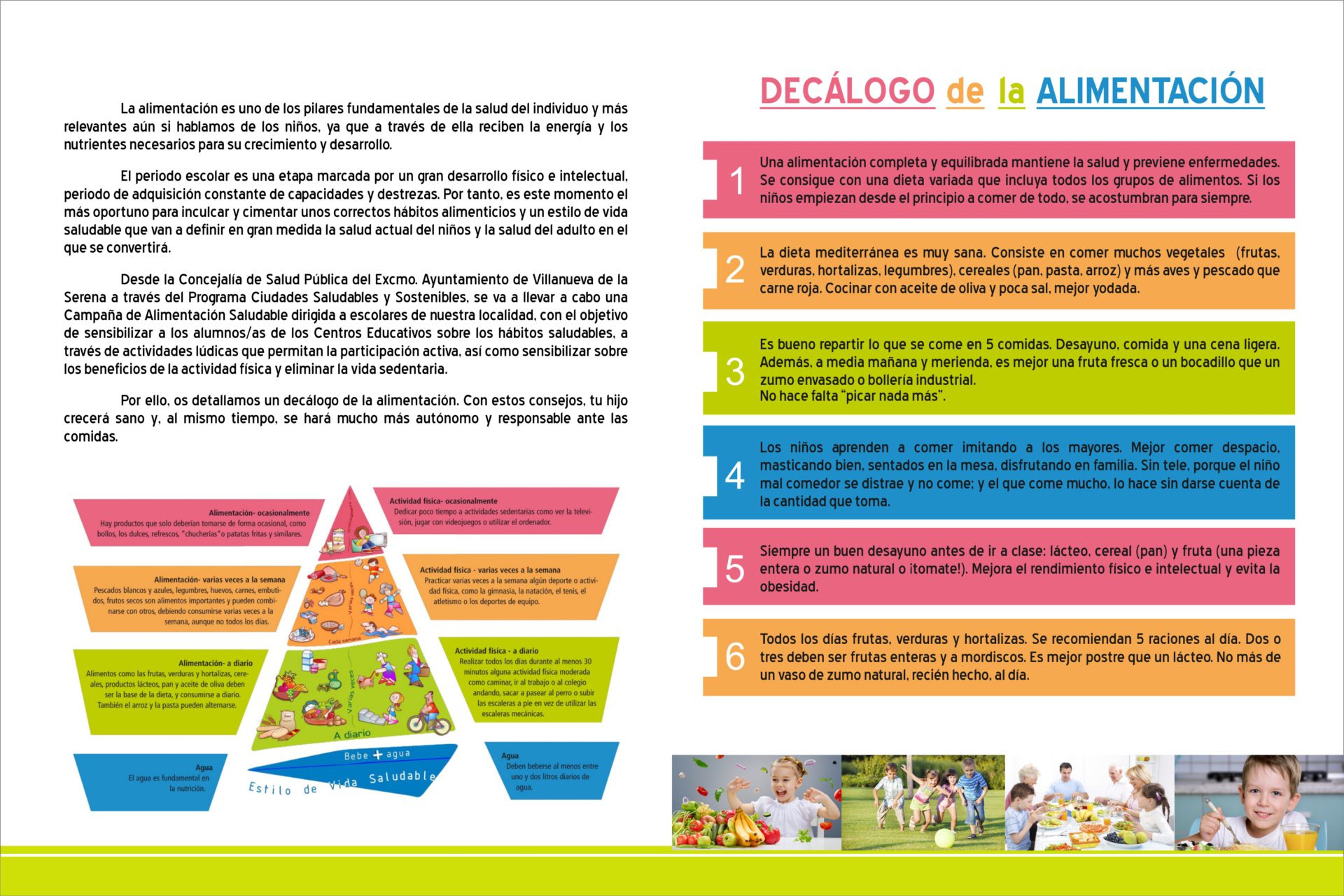 Manuel Fernández, concejal de Salud Pública explica que será el próximo día 12 de marzo cuando darán comienzo las distintas actividades que engloban la campaña. Los alumnos de 4º de Educación Primaria realizarán una gymkana de la alimentación, donde a través de juegos y actividad física, los alumnos aprenderán cuales son los alimentos saludables. También se llevará a cabo una nueva edición del concurso escolar “Los héroes de la fruta” que alcanza su cuarta edición. Se llevará a cabo del 10 al 21 de mayo y durante ese tiempo, los alumnos deberán llevar en el recreo una pieza de fruta. La clase ganadora recibirá además de un diploma, material escolar. Un concurso con el que se pretende aumentar el consumo de fruta en la merienda de los niños.