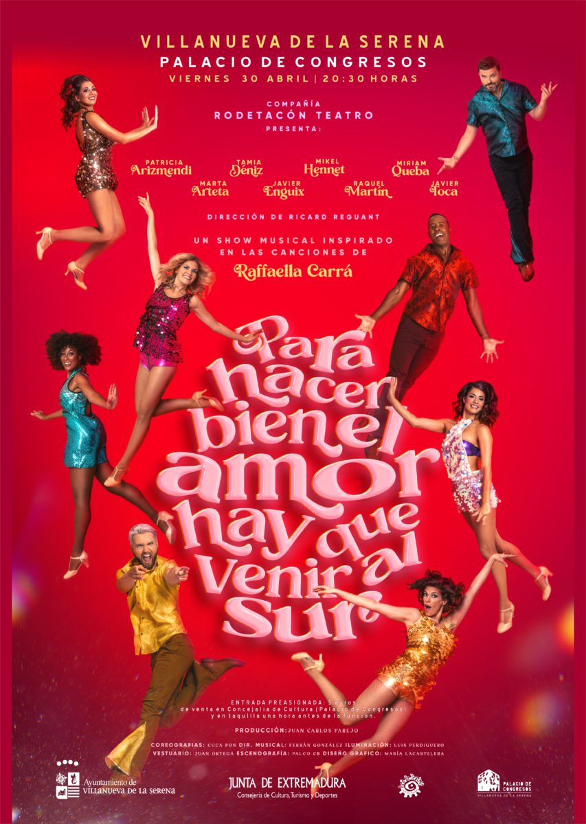 El show musical “Para hacer bien el amor hay que venir al sur” llega al palacio de congresos el 30 de abril a partir de las 20:30 horas. Se trata de una producción de la compañía extremeña Rodetacón Teatro que se inspira en las canciones de la cantante Raffaella Carrá así lo explica Ana Mansanet, concejal de Cultura quien además señala que las entradas serán preasignadas y que ya están a la venta por el precio de 5 euros. Para aquellos interesados, podrán adquirirlas en la concejalía de Cultura que vuelve al palacio de congresos.