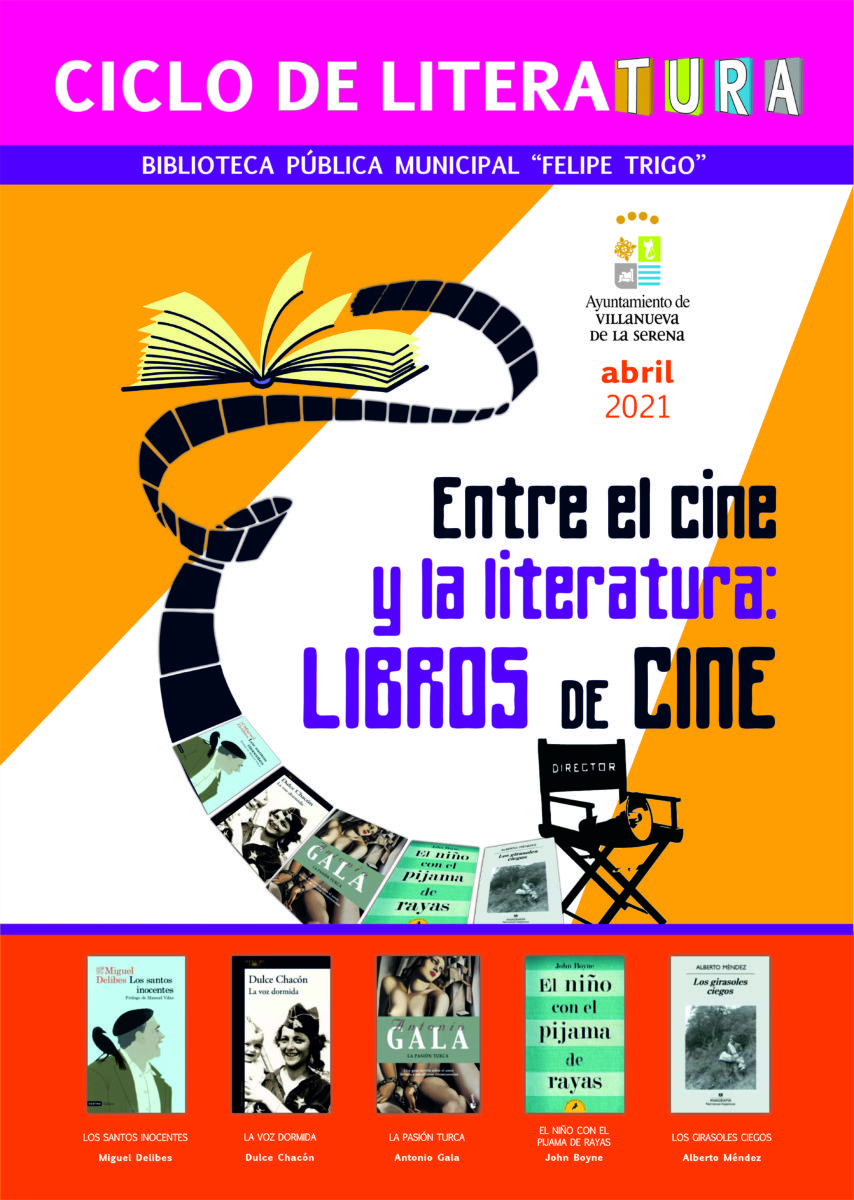 Por último, el ciclo de literatura de este mes se denomina “Entre el cine y la literatura: libros de cine”. En él podremos encontrar títulos como “Los santos inocentes” de Miguel Delibes, “La voz dormida” de Dulce Chacón, “Pasión turca” de Antonio Gala, “El niño con el pijama de rayas” de John Boyne y “Los girasoles ciegos” de Alberto Méndez.