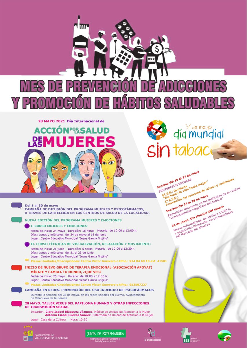 El 28 de mayo, Día Internacional de Acción por la Salud de las Mujeres, se llevará a cabo un taller sobre el virus del papiloma humano y otras infecciones de transmisión sexual impartido por Clara Isabel Blázquez, médico de Unidad de Atención a la Mujer y Antonia Isabel Cuevas, enfermera de dicha unidad. Será a las 10:30 horas en la Casa de la Cultura. Para poder asistir, hay que contactar con la concejalía de Igualdad en el teléfono 924 84 60 10.