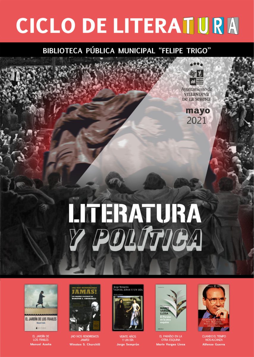 El ciclo de literatura en esta ocasión se denomina “Literatura y política” donde podremos encontrar cinco nuevos títulos entre los que se encuentran, “El jardín de los frailes” de Manuel Azaña, “¡No nos rendiremos jamás!” de Winston S. Churchill, “Veinte años y un día” de Jorge Semprún, “El paraíso en la otra esquina” de Mario Vargas Llosa y “Cuando el tiempo nos alcanza” de Alfonso Guerra.