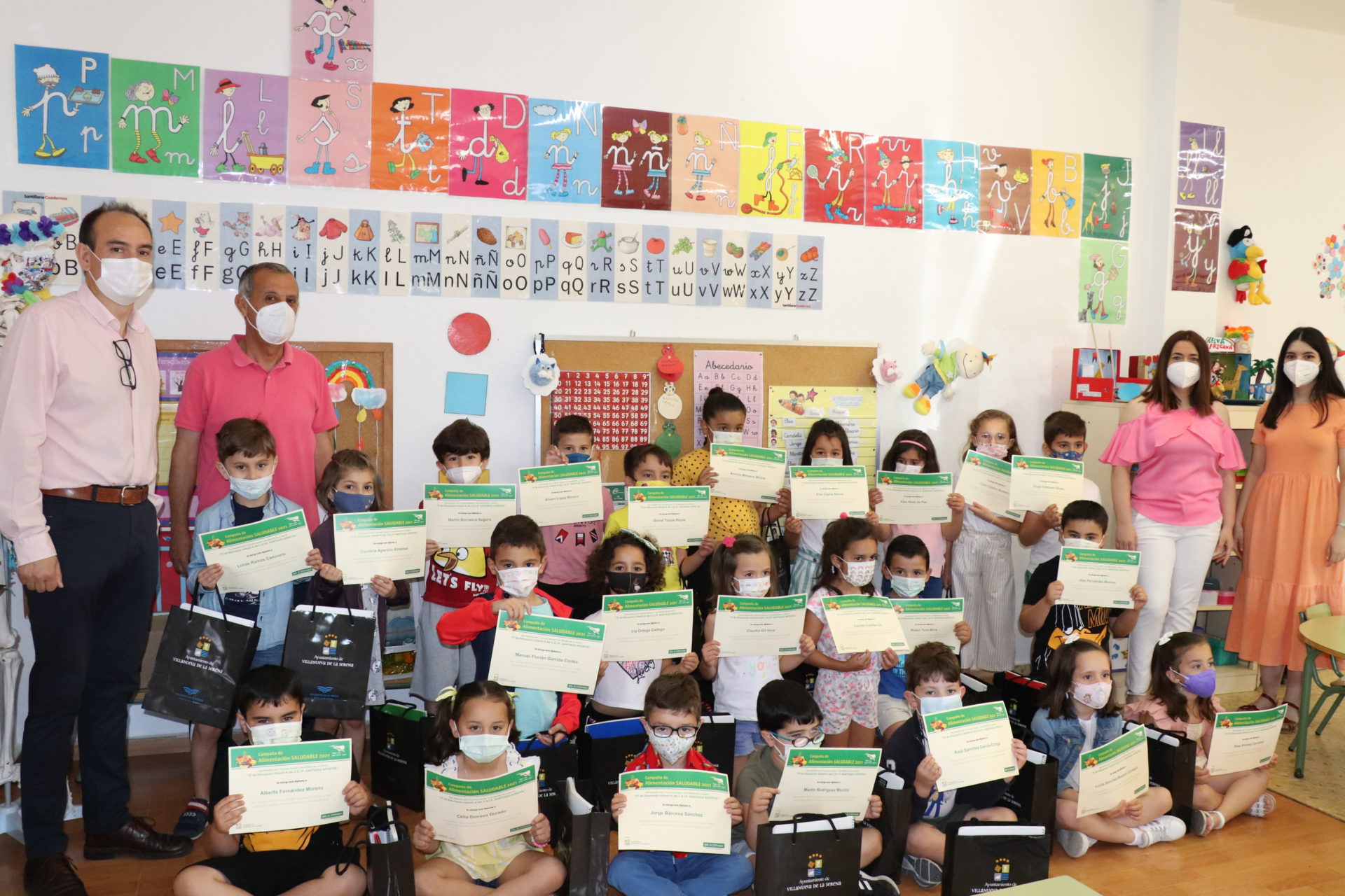 Los 25 alumnos del aula de tercero de Educación Infantil del colegio Santiago Apóstol son “Los héroes de la fruta” de este curso. Una actividad englobada dentro de la campaña de alimentación saludable 2021 que se desarrolla por parte de la concejalía de Salud Pública. Una campaña, con distintas actividades, que se ha desarrollado de marzo a mayo y en la que han participado alrededor de 900 escolares.