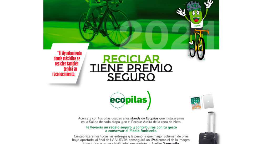 “Reciclar tiene premio seguro”, es la competición que la fundación Ecopilas, lleva a cabo durante la Vuelta Ciclista a España. Se trata de la ubicación de un stand en “Parque Vuelta”, en la zona cercana a la meta. En Villanueva de la Serena se instalará en la calle Tomás Parejo Camacho y todos aquellos que lo deseen, podrán depositar los residuos de pilas por la tarde.