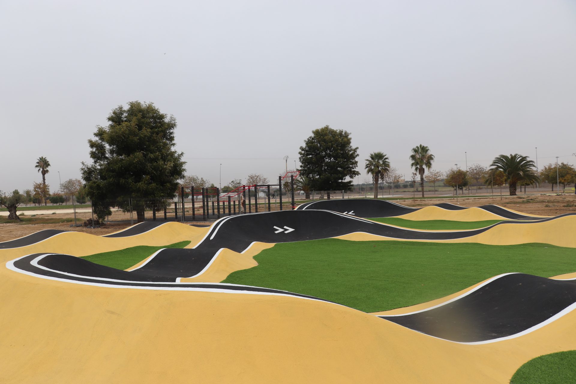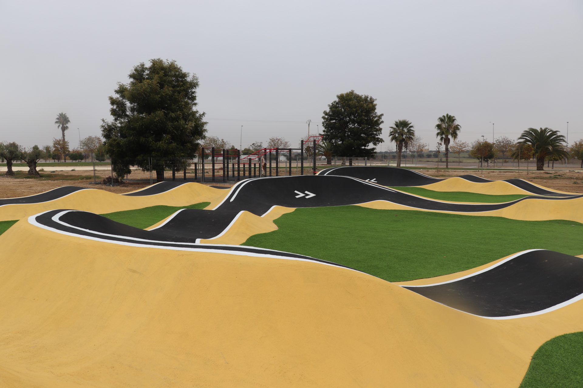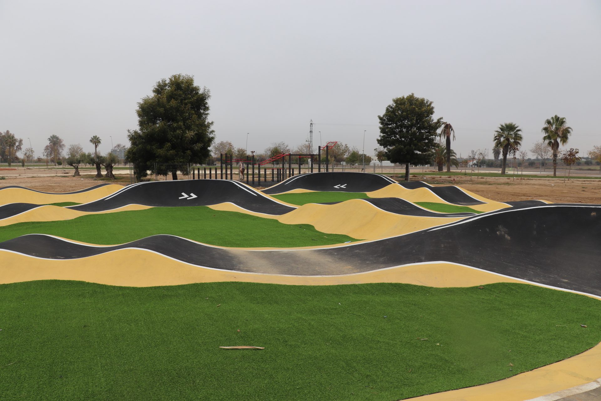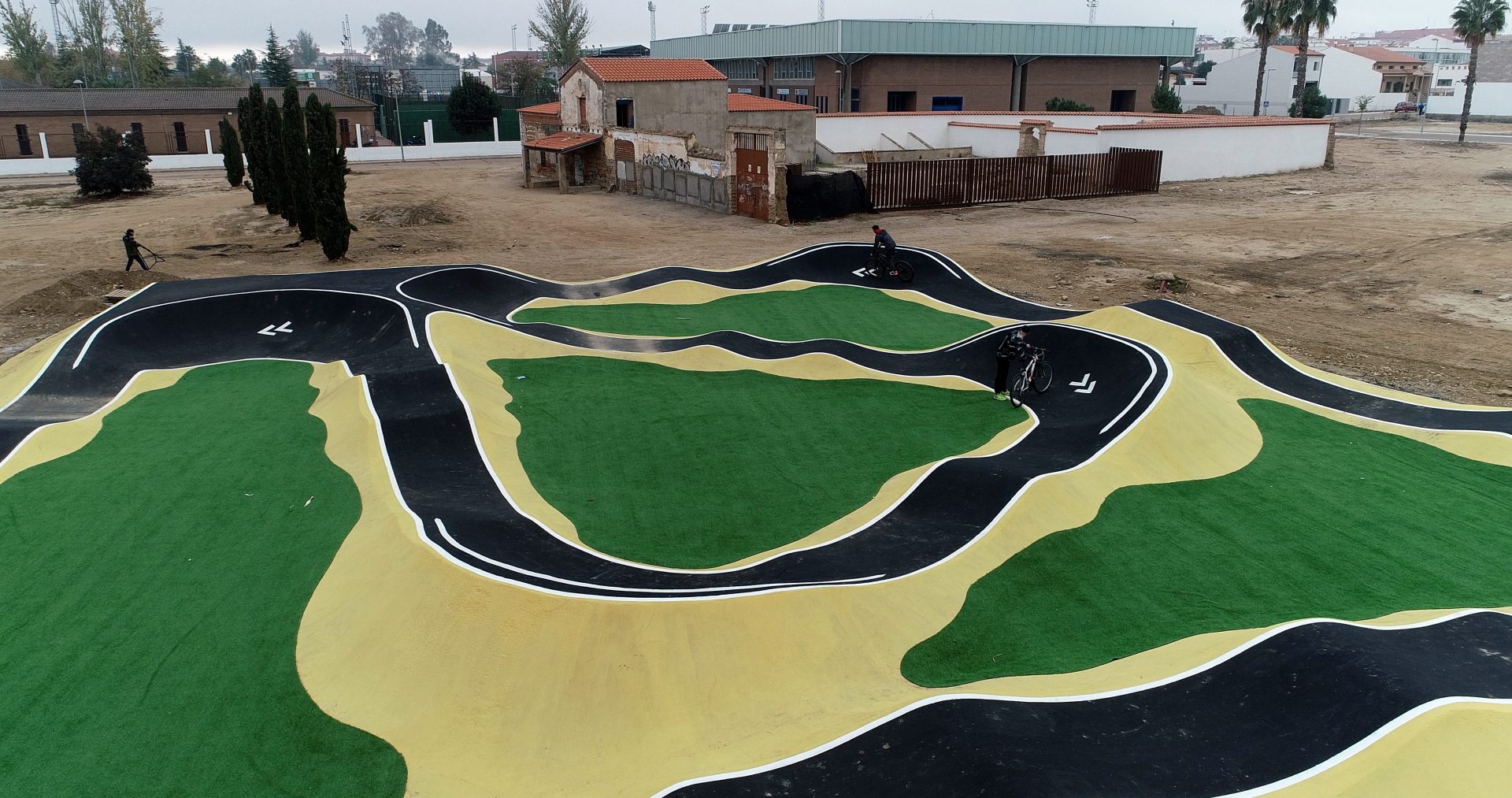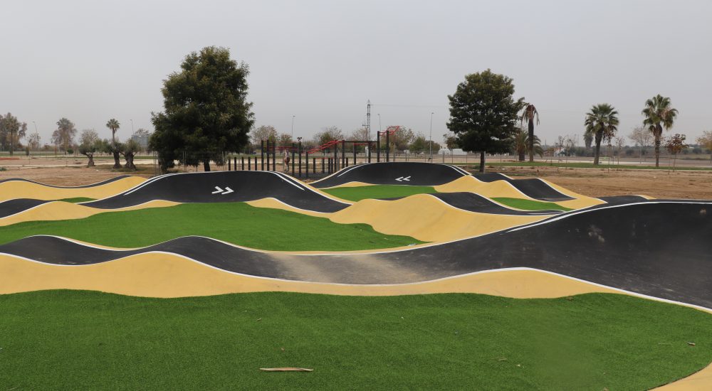 A falta de la adecuación del perímetro del acerado, que se realizará en próximos días, ya han concluido las obras del circuito Pumptrack, ubicado en el nuevo parque de avenida de los Deportes, junto al antiguo molino de aceite.