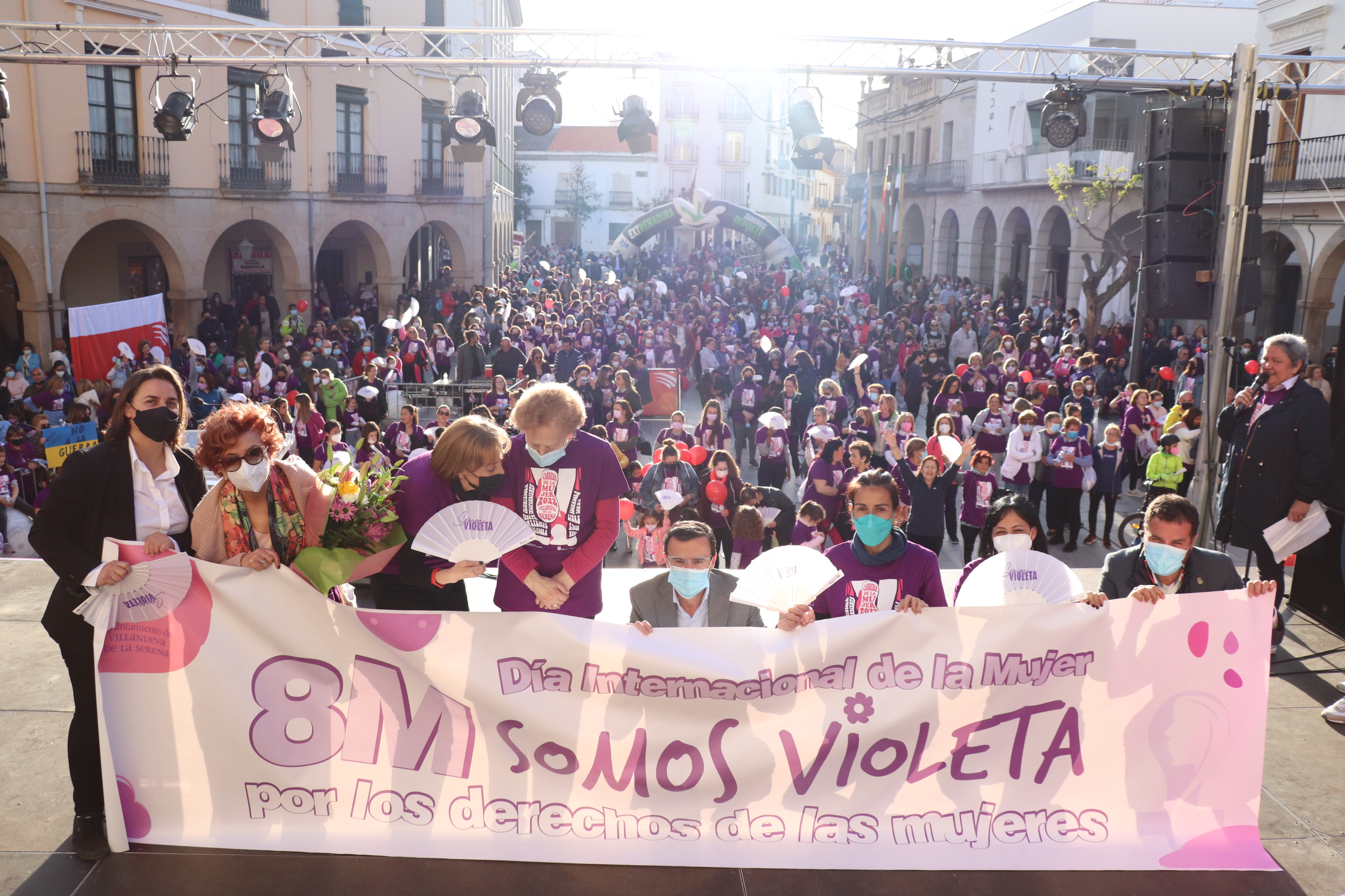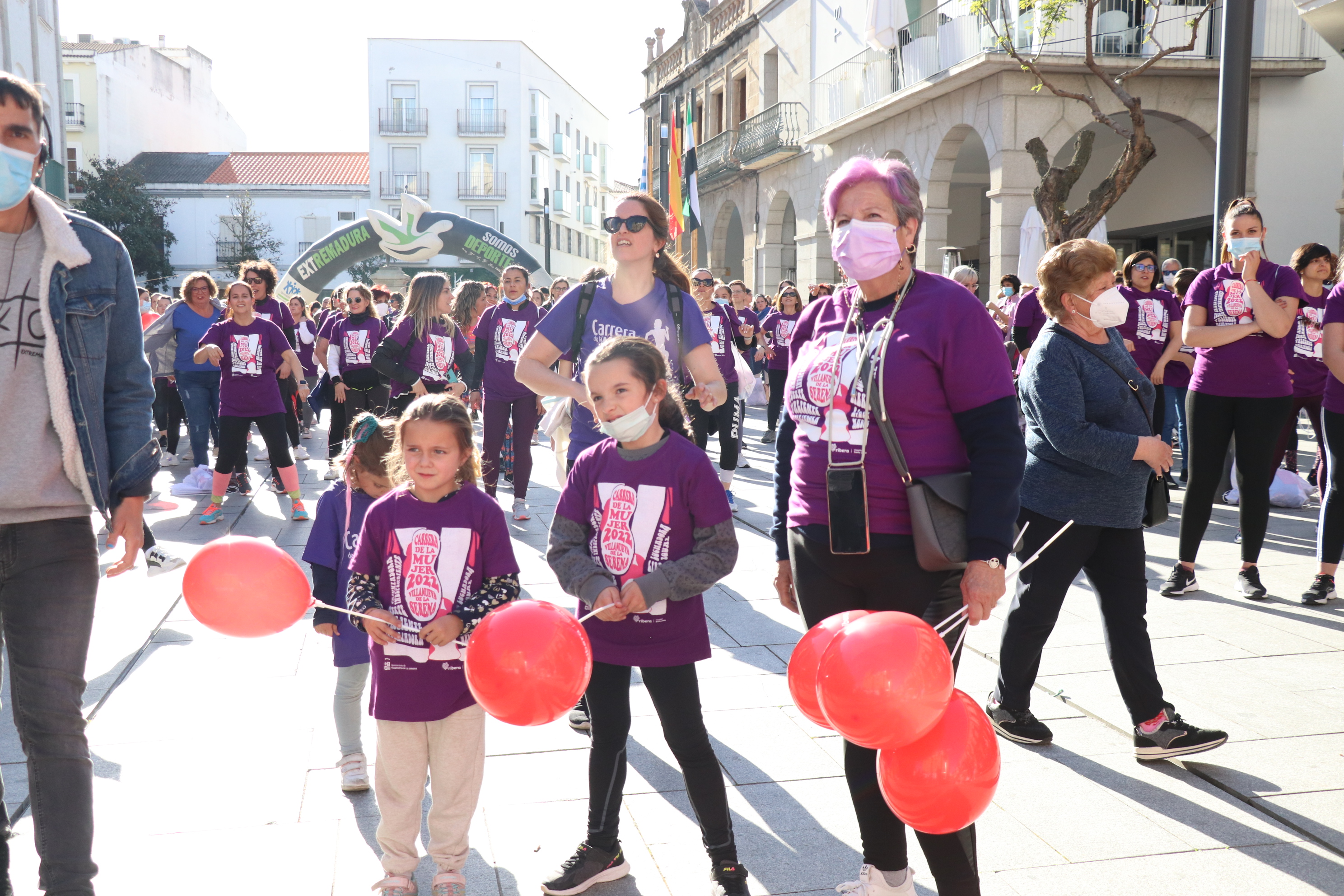 Y es que, la Plaza de España villanovense ha recuperado este sábado la tradicional Carrera de la Mujer que el pasado año tuvo que suspenderse con motivo de la pandemia.
