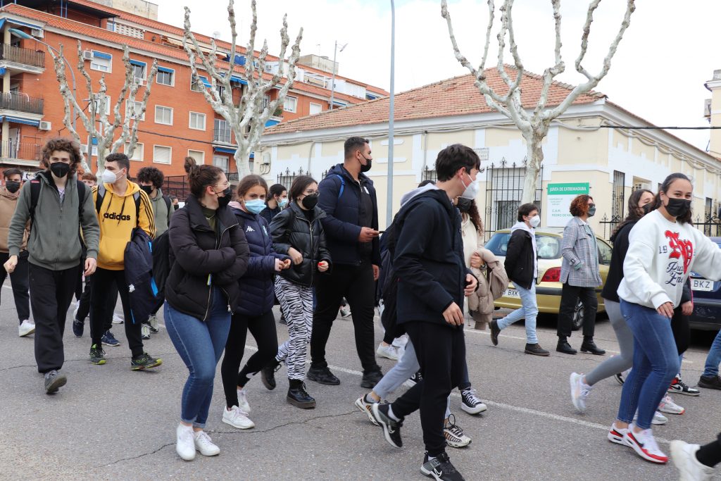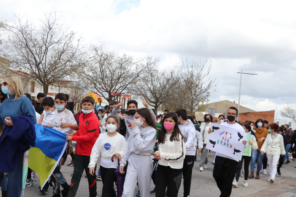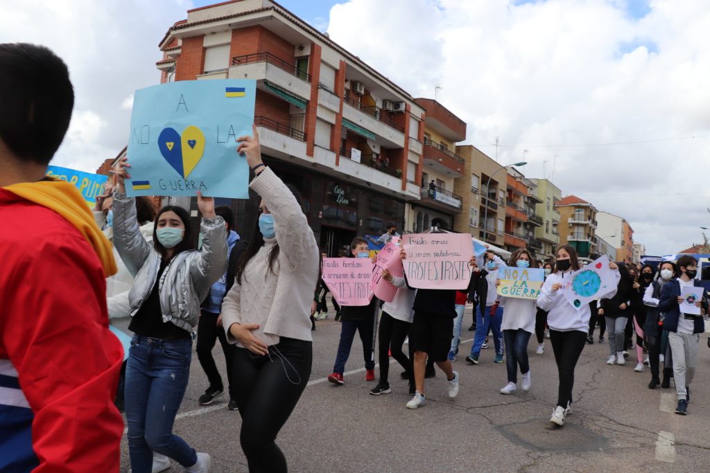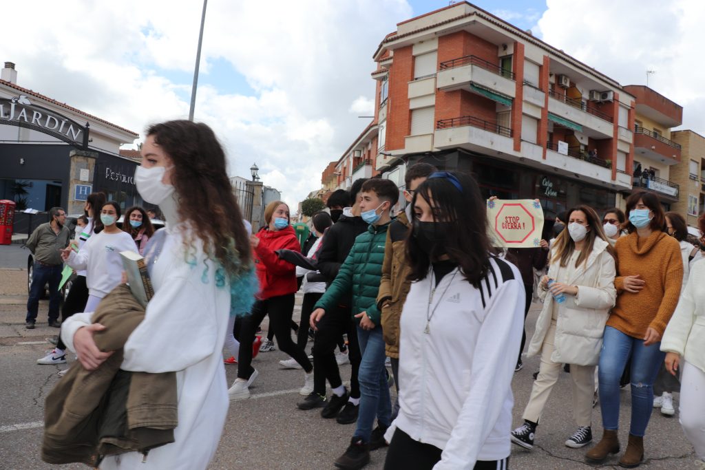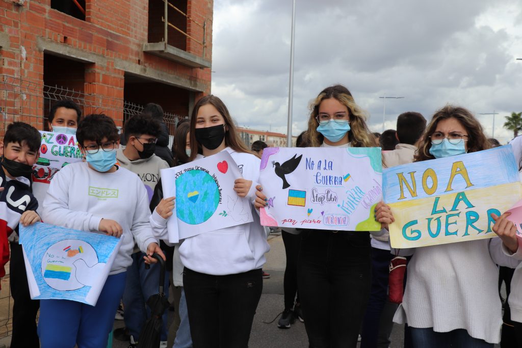 Con pancartas de “No a la guerra”, el Instituto de Educación Secundaria Puerta de la Serena, ha organizado una marcha por la paz en la que han participado todos los alumnos del centro. Una marcha a favor de la paz y del rechazo absoluto a la actual guerra que se está produciendo en Ucrania.