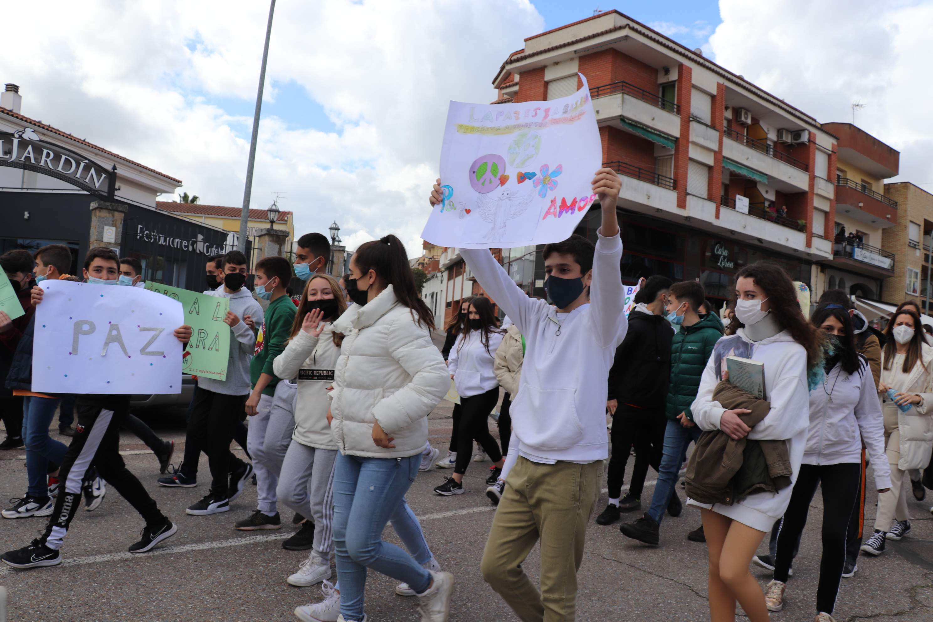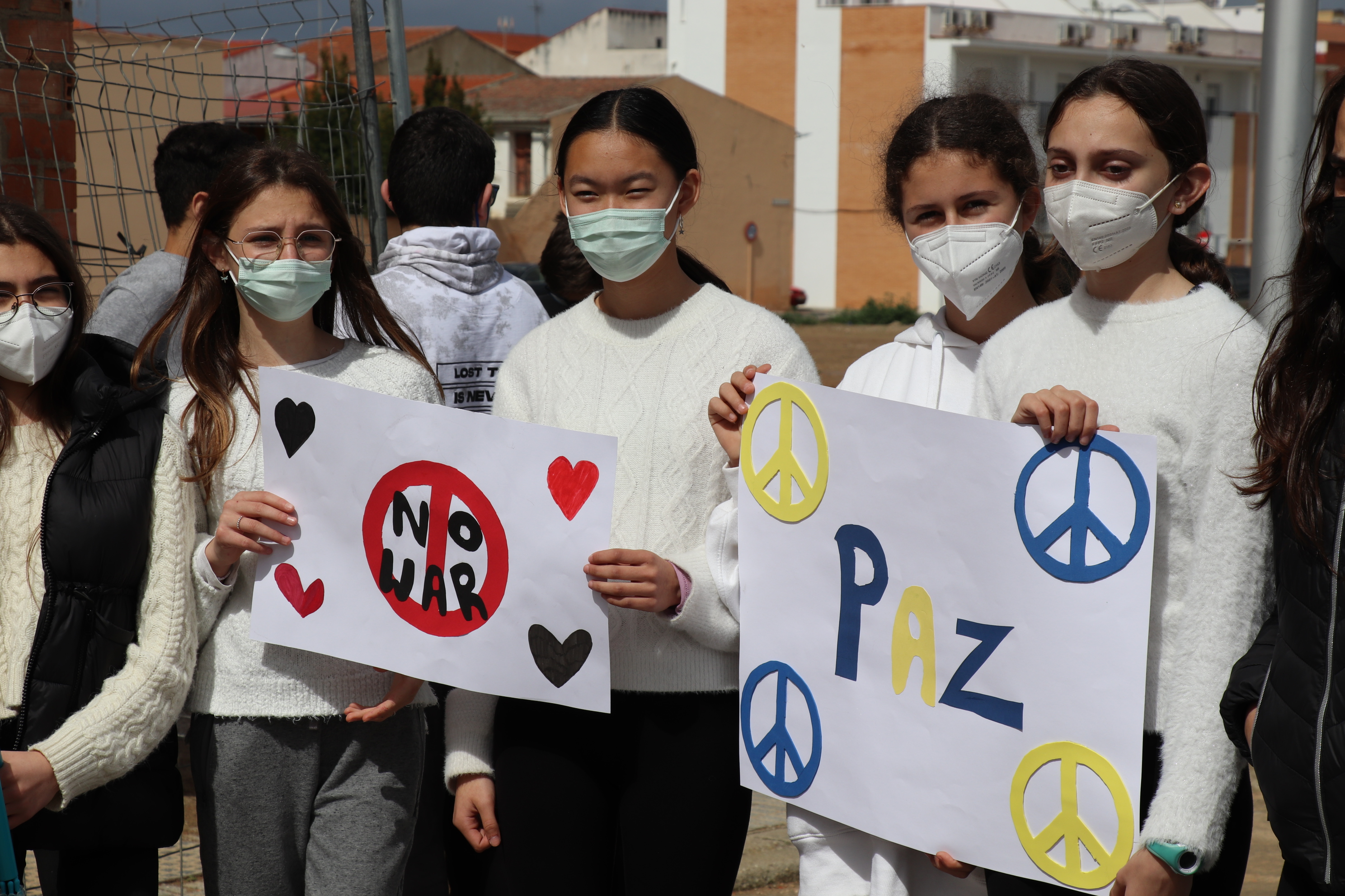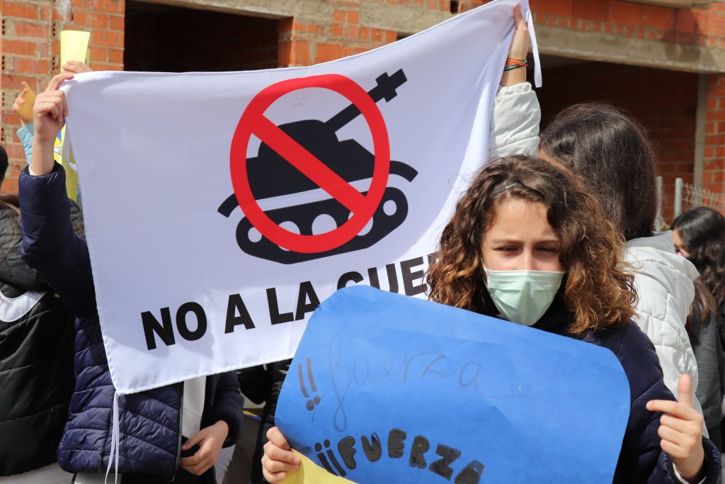 Con pancartas de “No a la guerra”, el Instituto de Educación Secundaria Puerta de la Serena, ha organizado una marcha por la paz en la que han participado todos los alumnos del centro. Una marcha a favor de la paz y del rechazo absoluto a la actual guerra que se está produciendo en Ucrania.