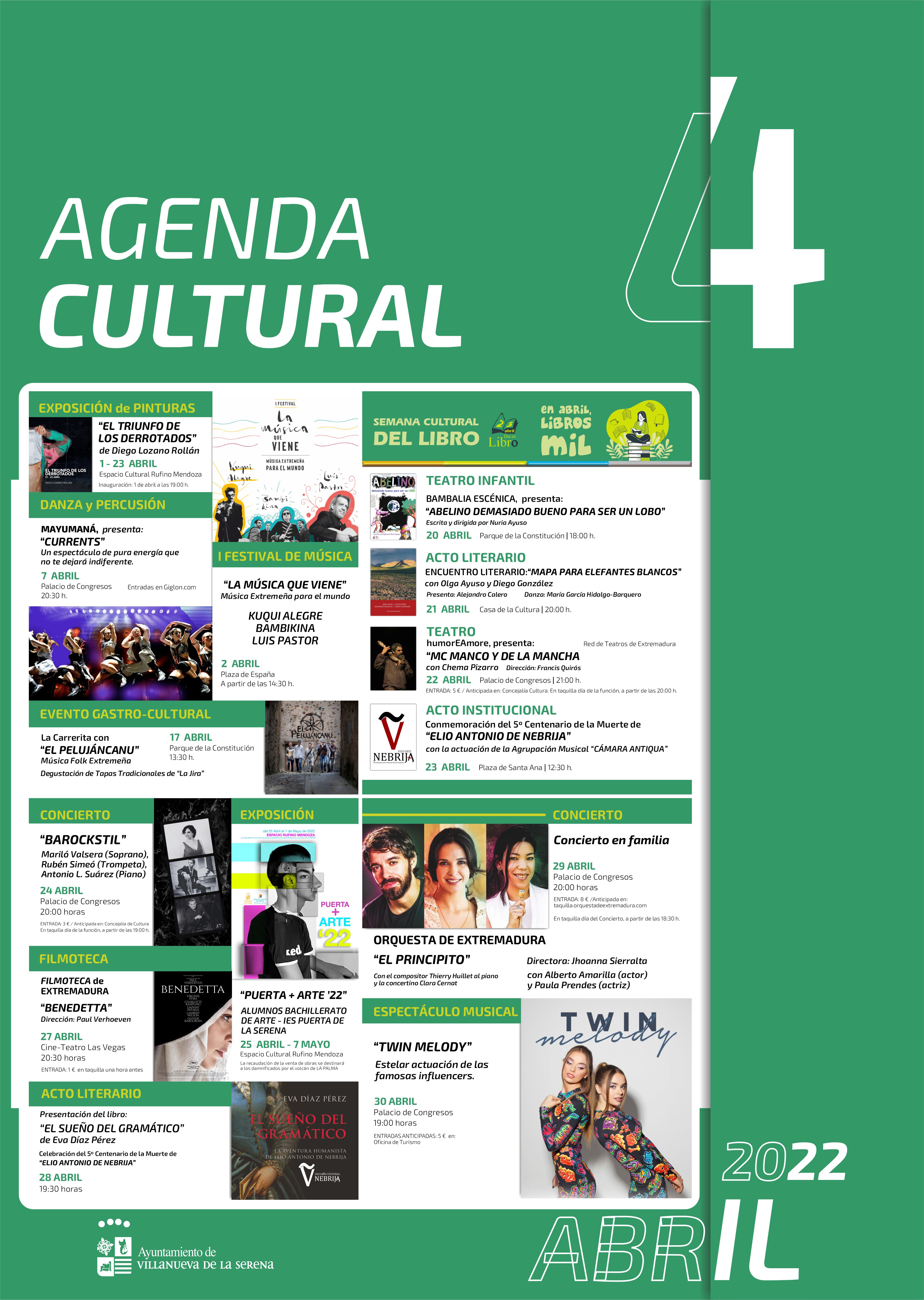 La programación cultural del mes de abril, viene cargada de actividades para el disfrute de toda la ciudadanía. Una programación, que engloba, según explica Ana Mansanet, concejala de Cultura, exposiciones, música, actividades por el Día del Libro, danza y cine.