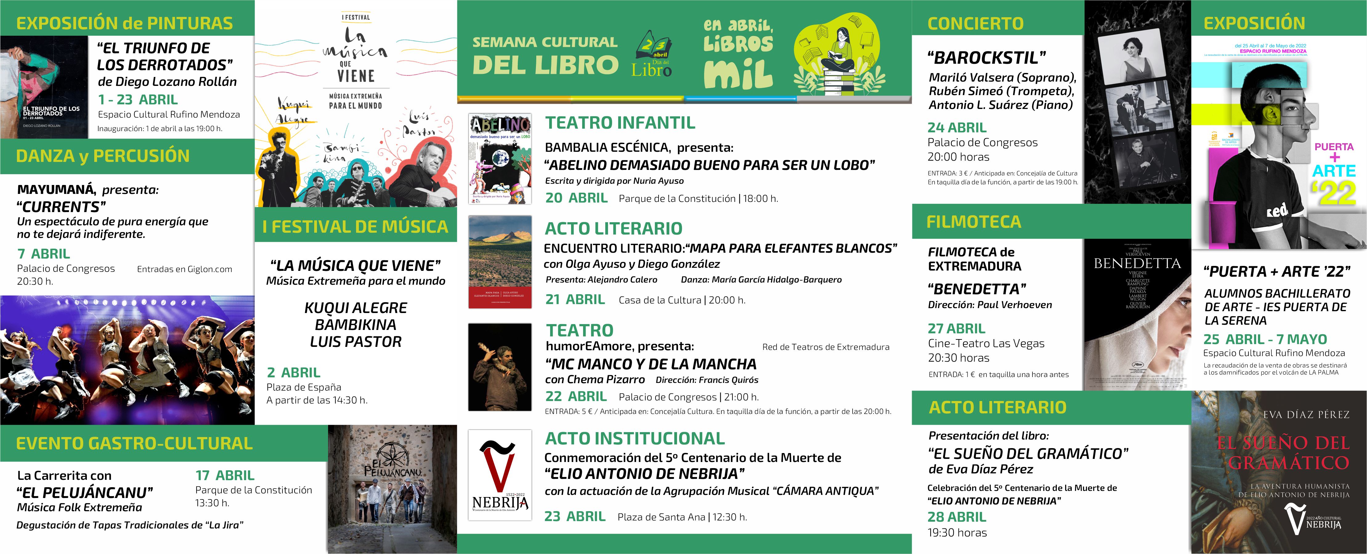 La programación cultural del mes de abril, viene cargada de actividades para el disfrute de toda la ciudadanía. Una programación, que engloba, según explica Ana Mansanet, concejala de Cultura, exposiciones, música, actividades por el Día del Libro, danza y cine.