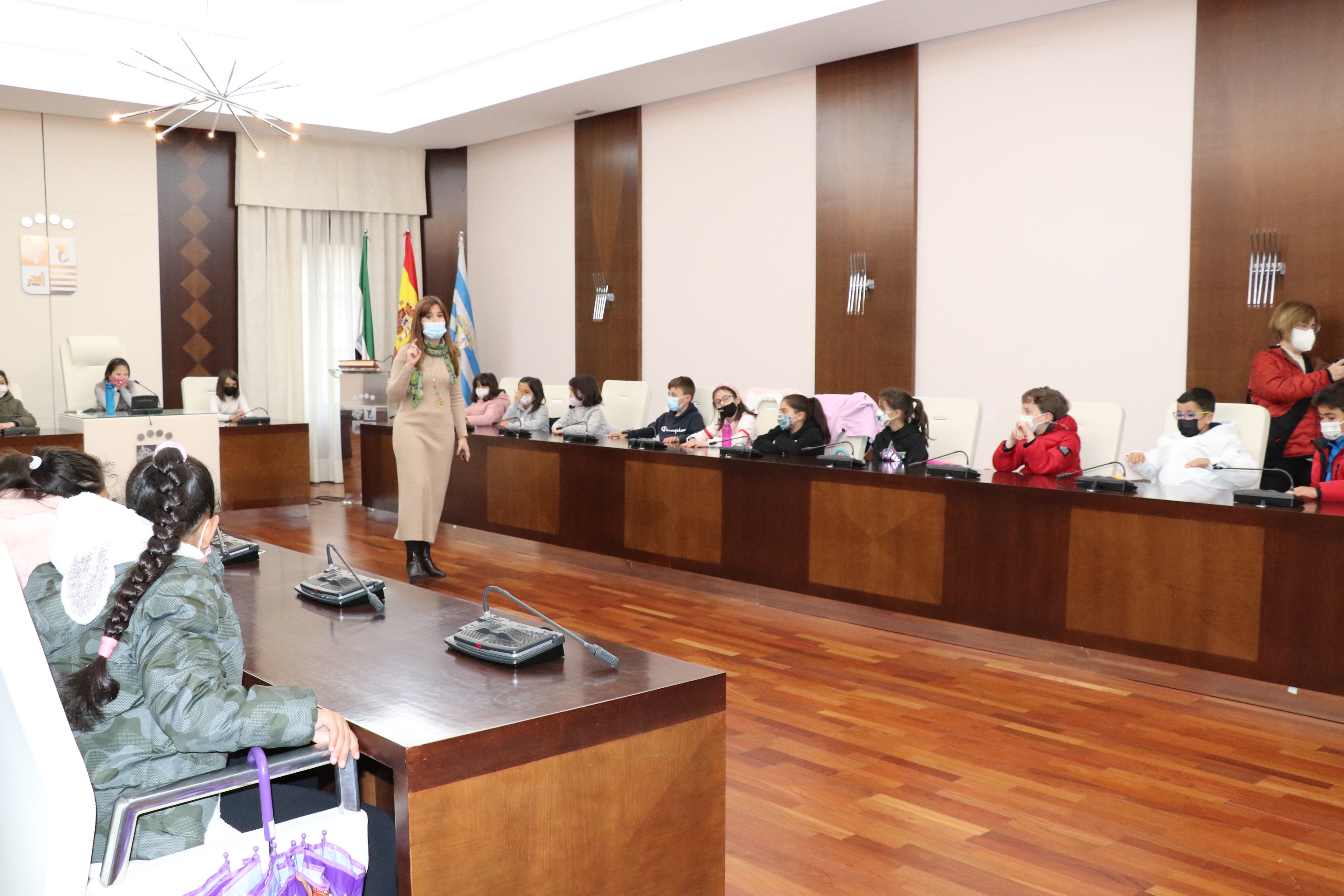 Cual es el funcionamiento del Ayuntamiento, así como los diferentes servicios que componen la administración local, el trabajo que realizan los concejales o para que sirve la Constitución Española, han sido los temas que los alumnos de tercero de primaria del CEIP Santiago Apóstol han aprendido en su visita este martes cinco de abril, de la mano de la concejala de Educación, María Lozano. En definitiva, han tenido la oportunidad de conocer de cerca el funcionamiento de esta institución, así como aspectos significativos de la ciudad.
