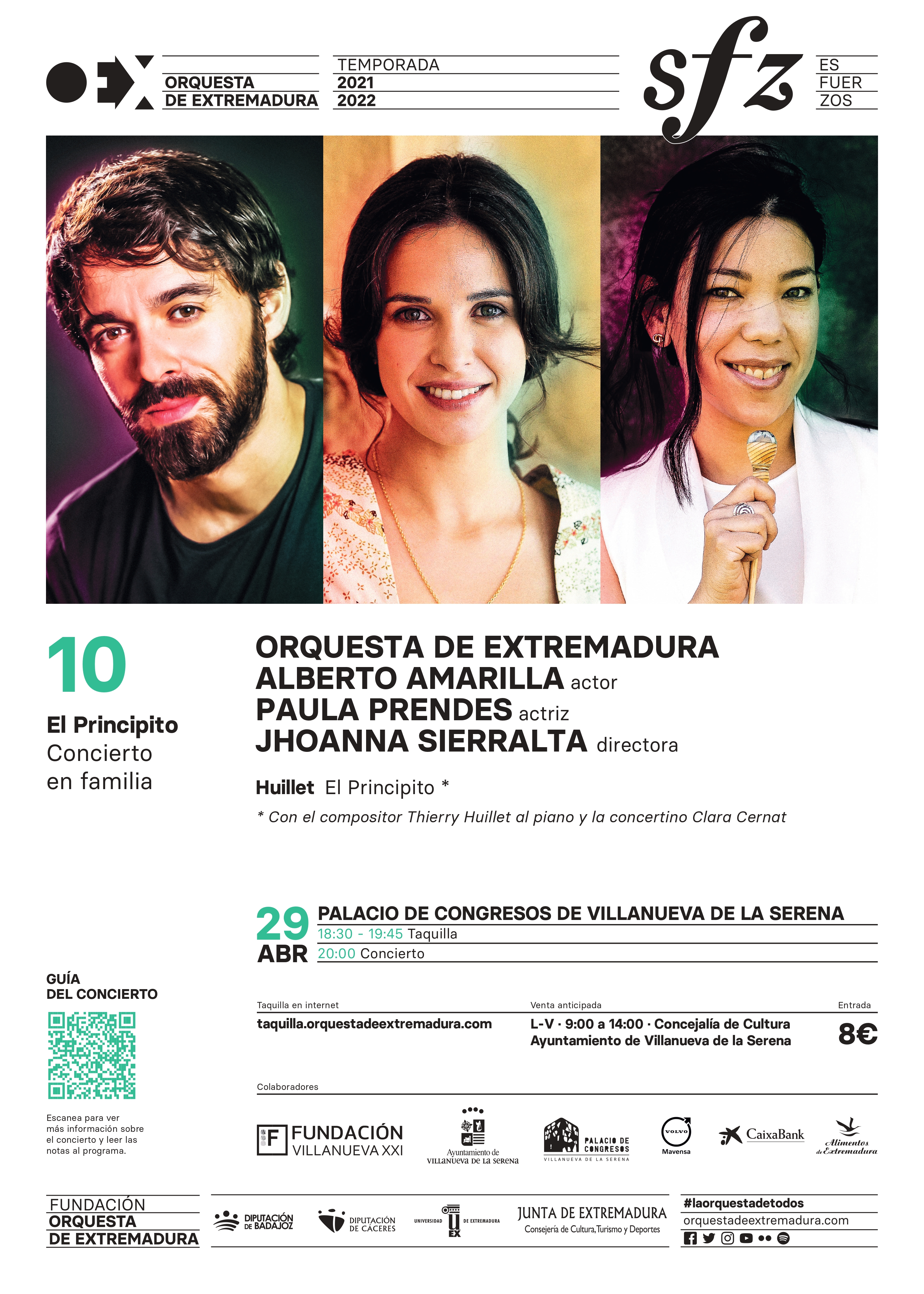 Precisamente Alberto Amarilla cuenta con experiencia en este formato con la Orquesta de Extremadura, narrando en 2020 las historias de Pedro y el lobo y de Babar, el pequeño elefante, sobre la música de Serguéi Prokófiev y Francis Poulenc. Incluso en un registro más “serio”, conmemorando ese mismo año el 250º Aniversario del nacimiento de Ludwig van Beethoven, recitando el texto de Egmont. Amarilla será compañero idóneo para Paula Prendes, que debuta con la Orquesta de Extremadura.