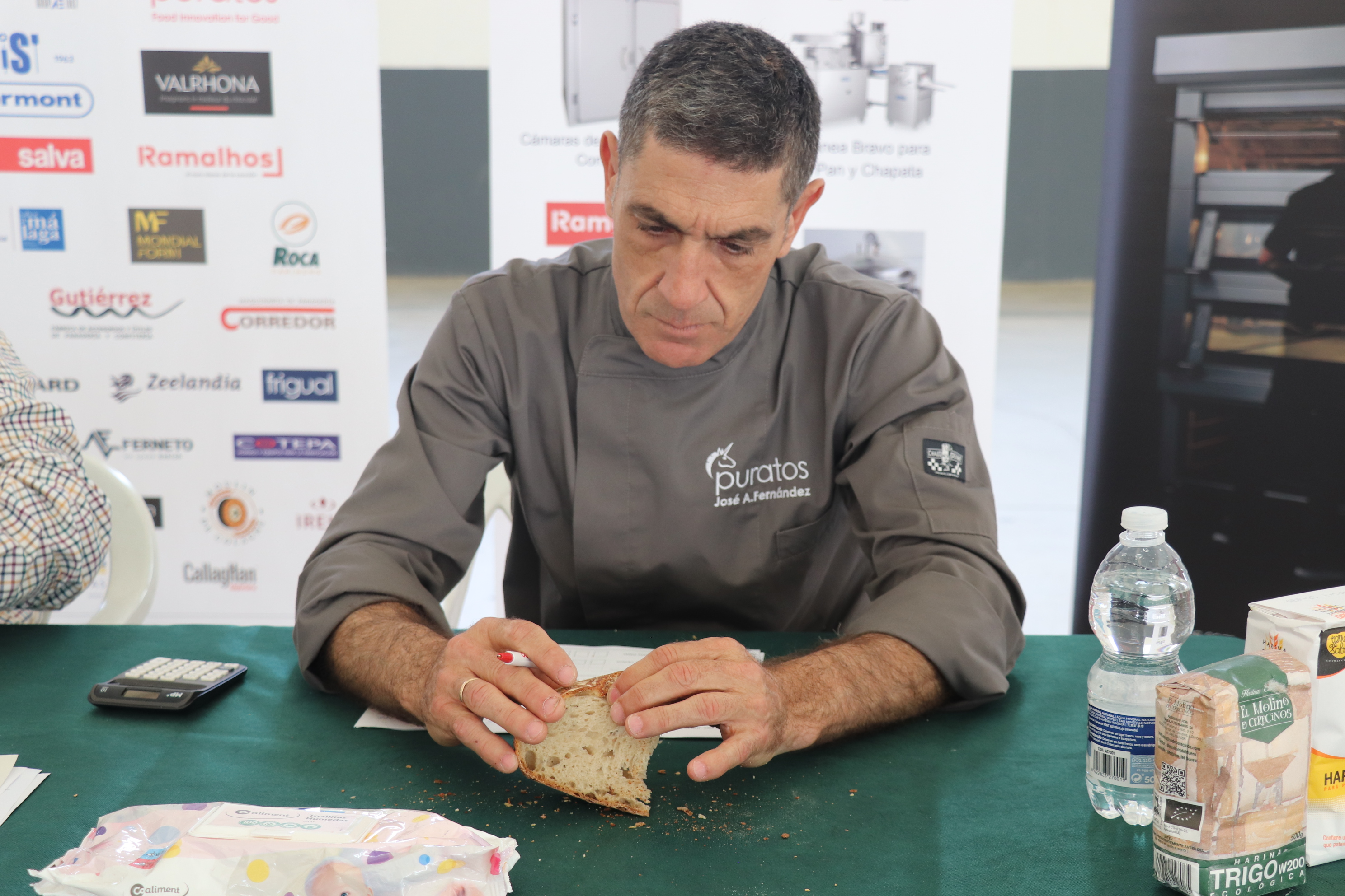 Tras la cata a ciegas por el jurado compuesto por cuatro profesionales del sector del pan, se ha procedido a las valoraciones, seleccionando un total de tres finalistas entre los que se encuentran Borja Meneses Campos, Enrique Martos Delgado y el ganador, José Manuel Garrote Delgado. Garrote, emocionado y muy contento por este reconocimiento que pone en valor y gratifica el trabajo de los panaderos, señala que ha ganado un pan elaborado con productos de calidad y que cuenta con muchas horas de fermentación.