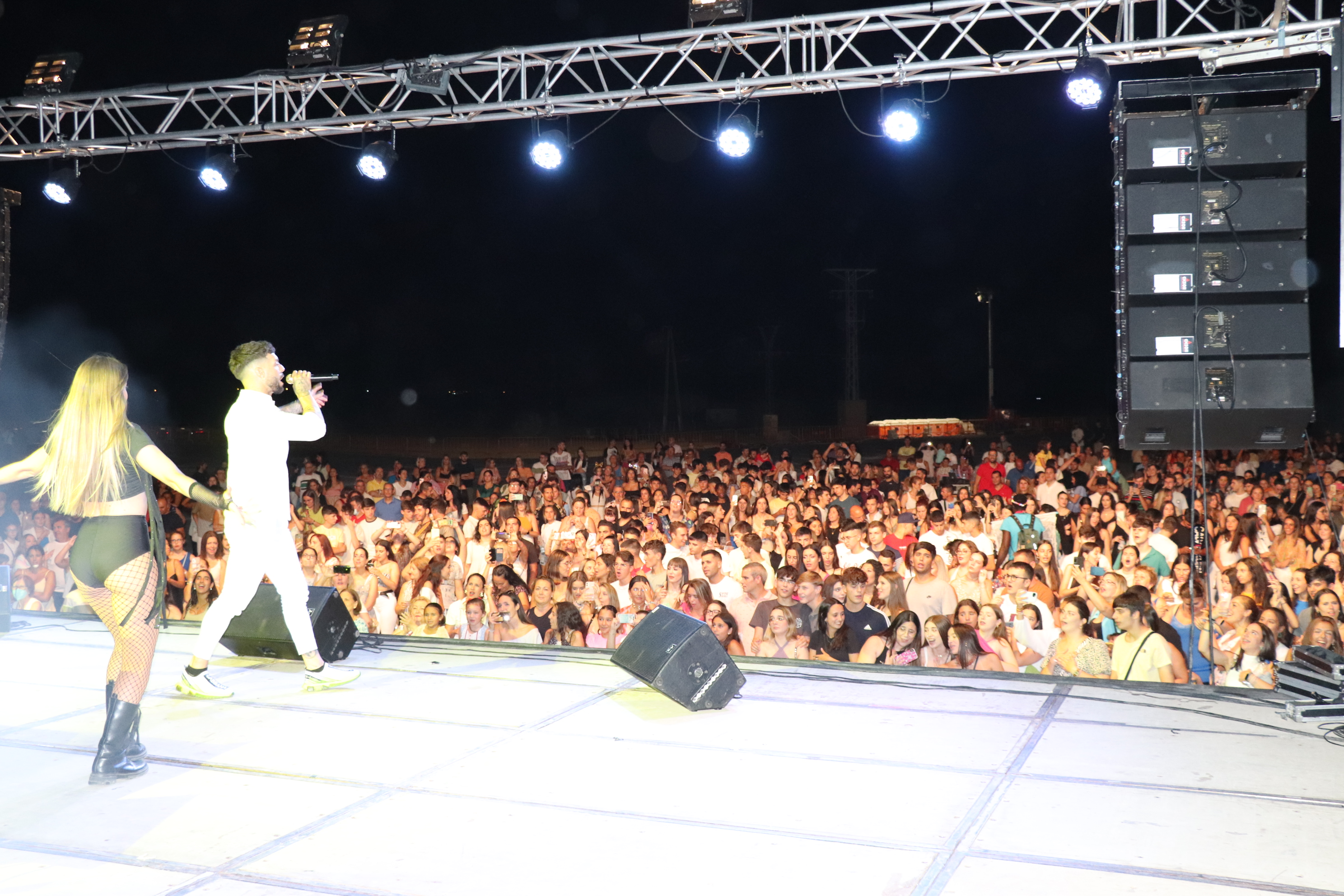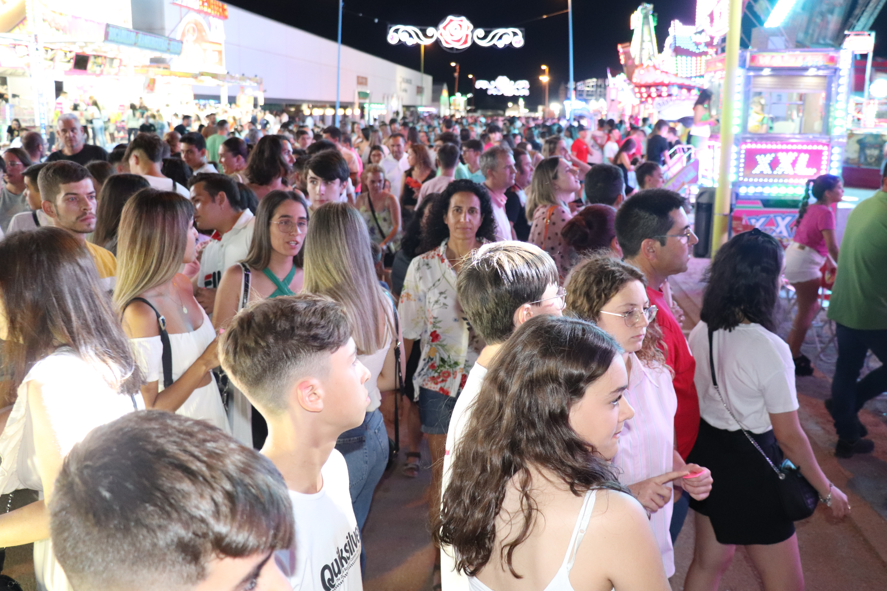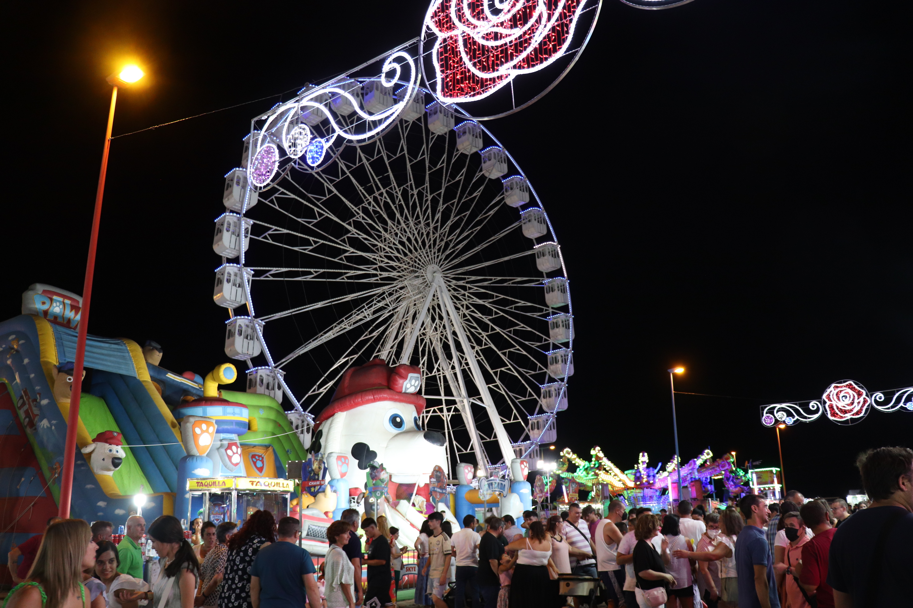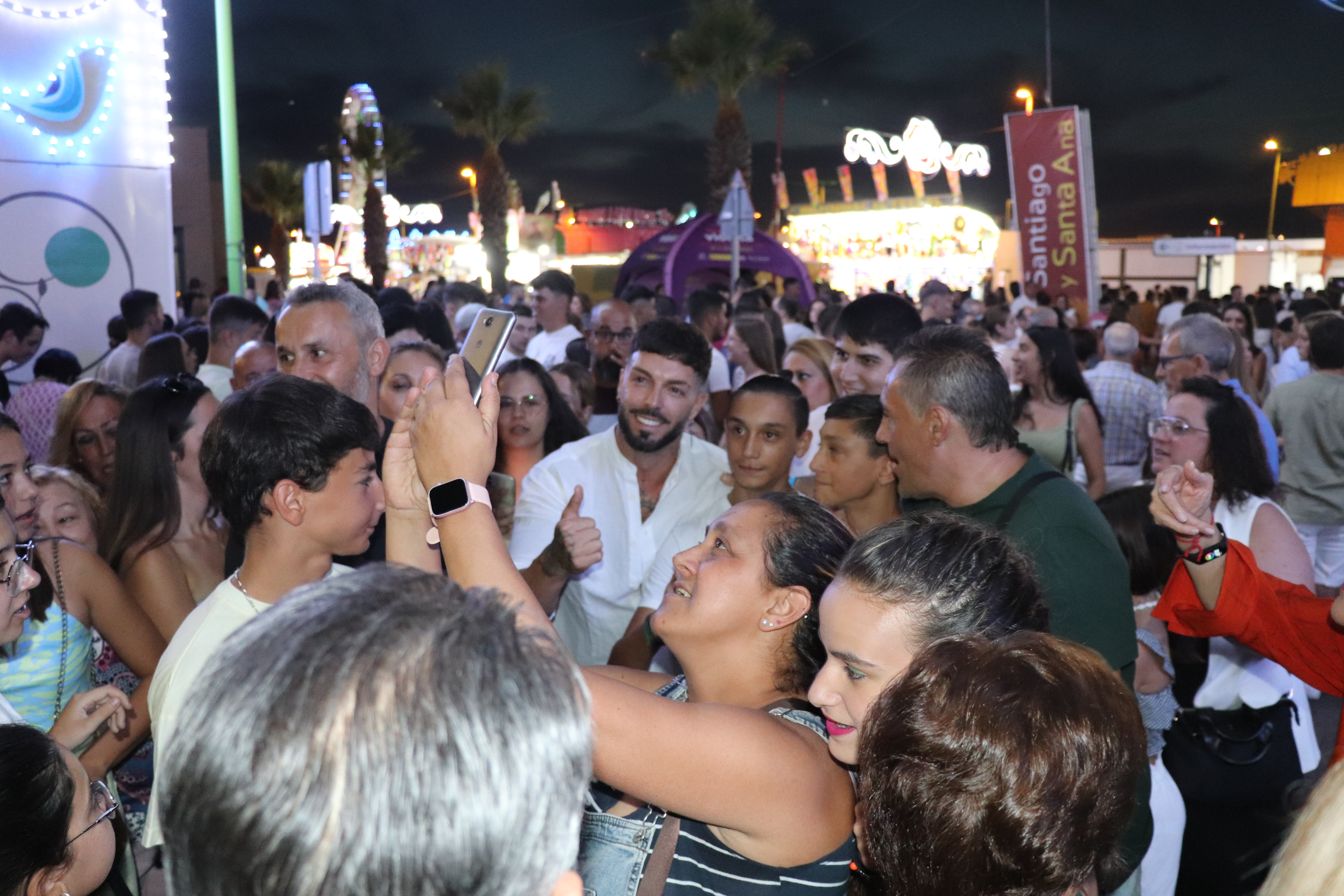 Las fiestas patronales de Santiago y Santa Ana 2022 ya han comenzado con el encendido oficial del reciento ferial, por el que hasta el próximo martes 26, último día de fiestas, pasarán alrededor de 30.000 personas. Con el encendido, a cargo del pequeño Iván Lozano y el cantante Rasel, que después ofreció un concierto; la feria vuelve a celebrarse sin restricciones ni de aforo ni de horario.