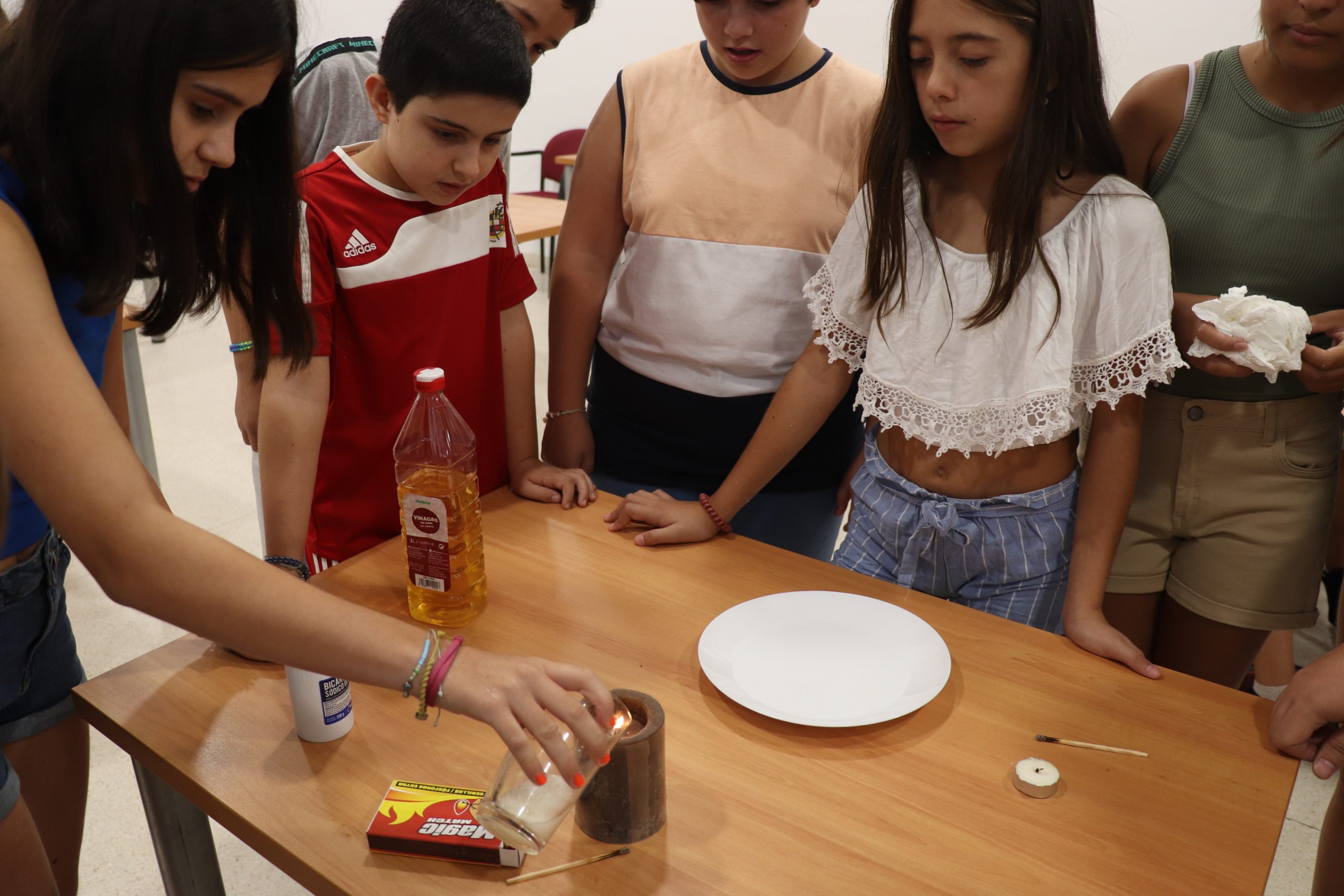 Apagar una vela sin necesidad de soplarla o hacer una masa con agua y maicena para recrear el principio de Newton, son solo dos de los varios experimentos que han realizado en el taller infantil “Ciencia y experimento” llevado a cabo por la Universidad Popular.