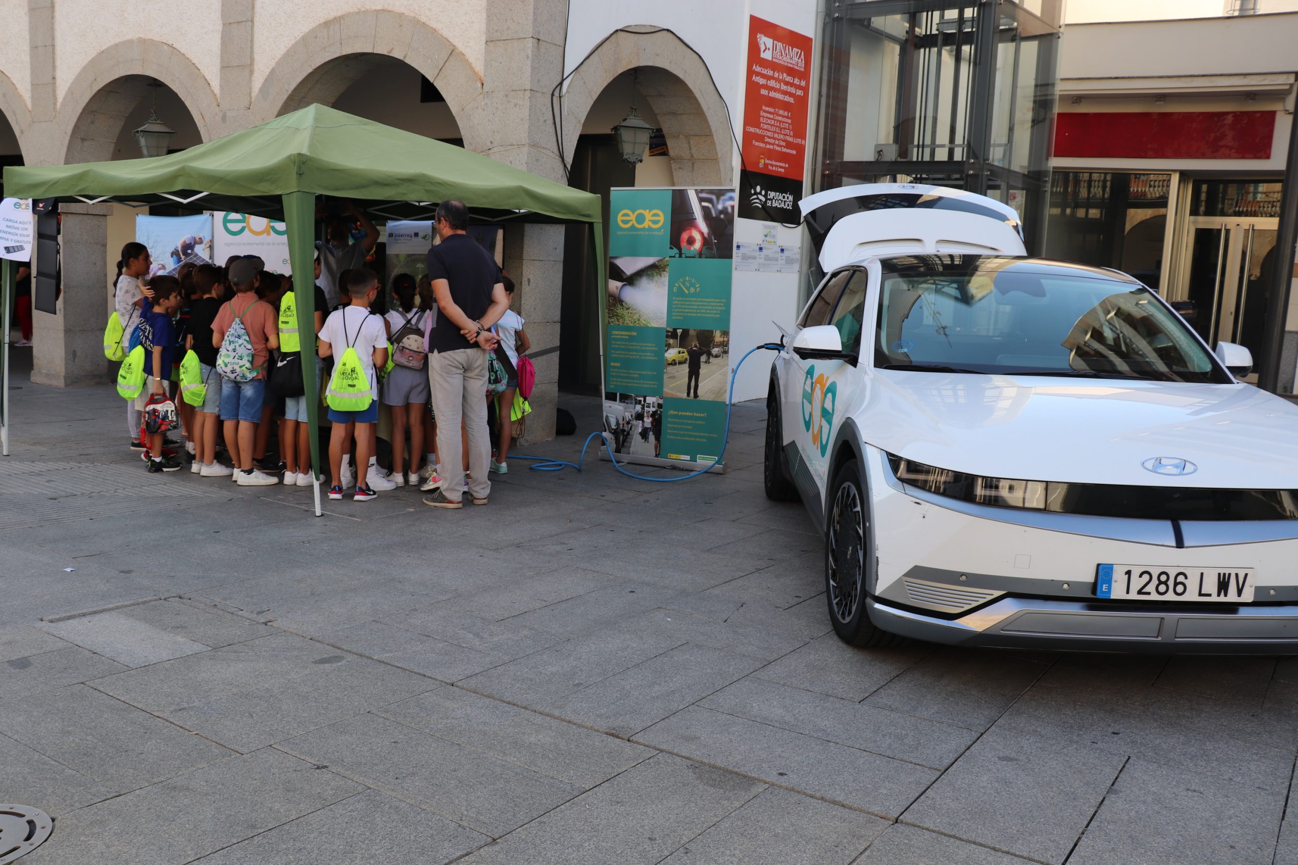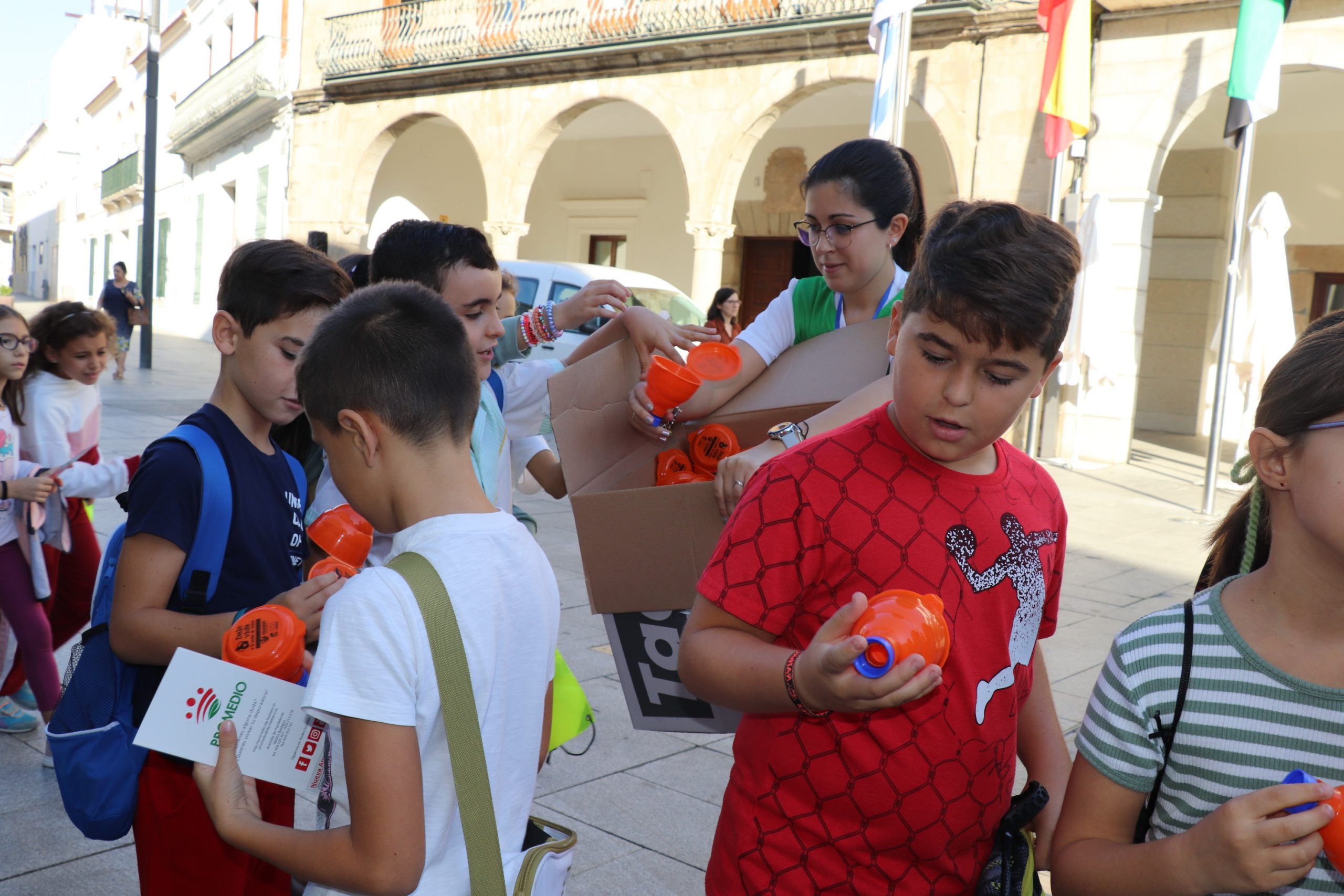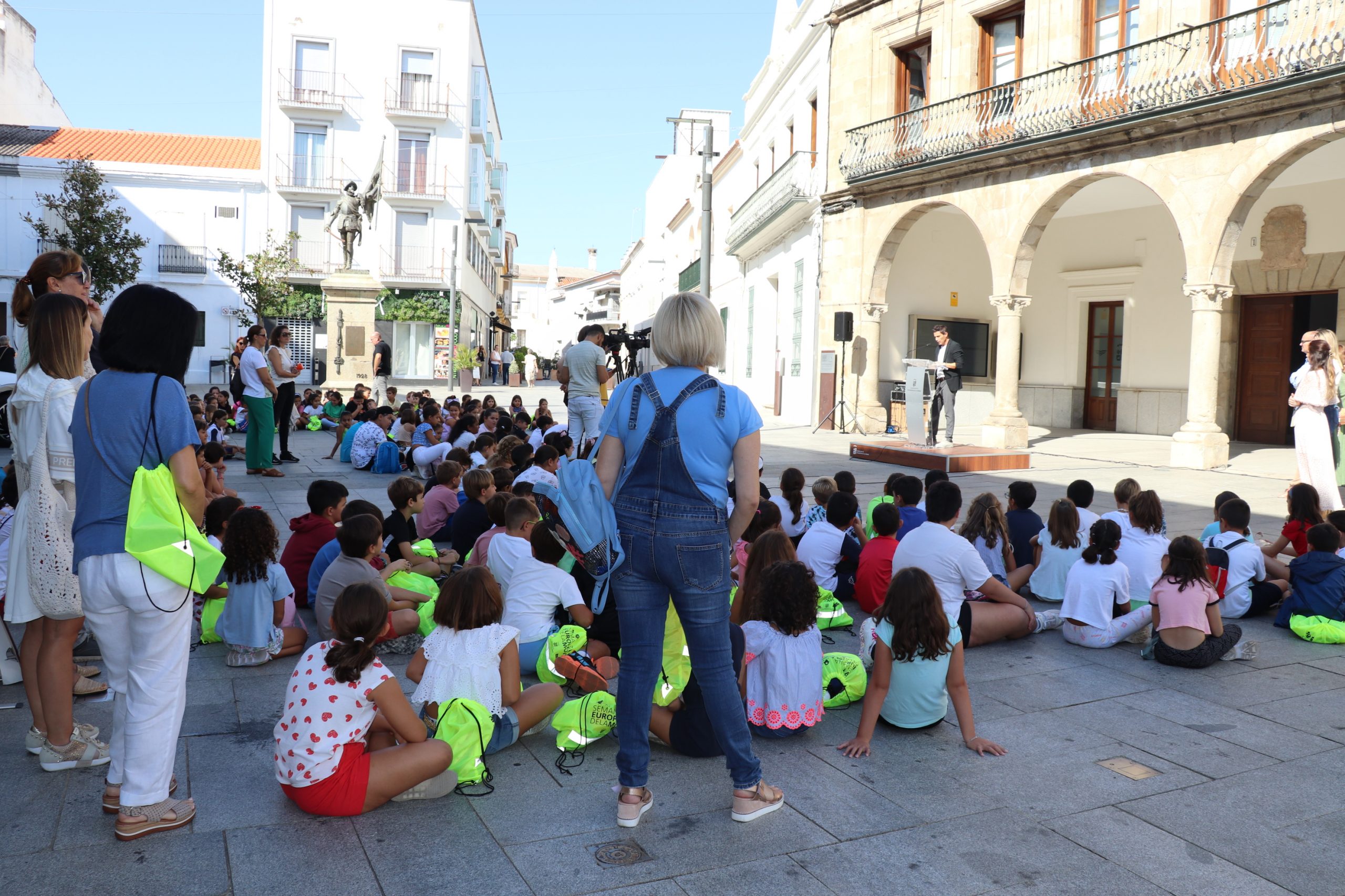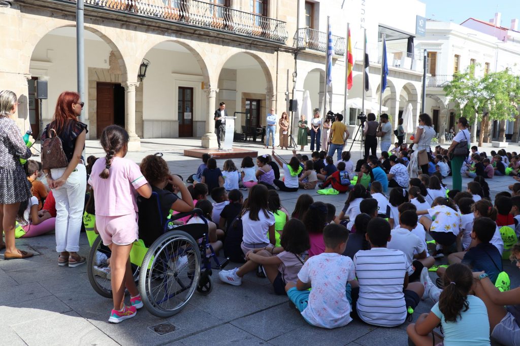 La plaza de España se convierte en el lugar de encuentro de un total de 225 alumnos de 4º de primaria de los diferentes centros escolares, que celebran el Día Mundial Sin Coche con diferentes actividades, todas ellas, con el objetivo de sensibilizar a los participantes de las consecuencias negativas que tiene el uso excesivo de la utilización del coche en la ciudad.