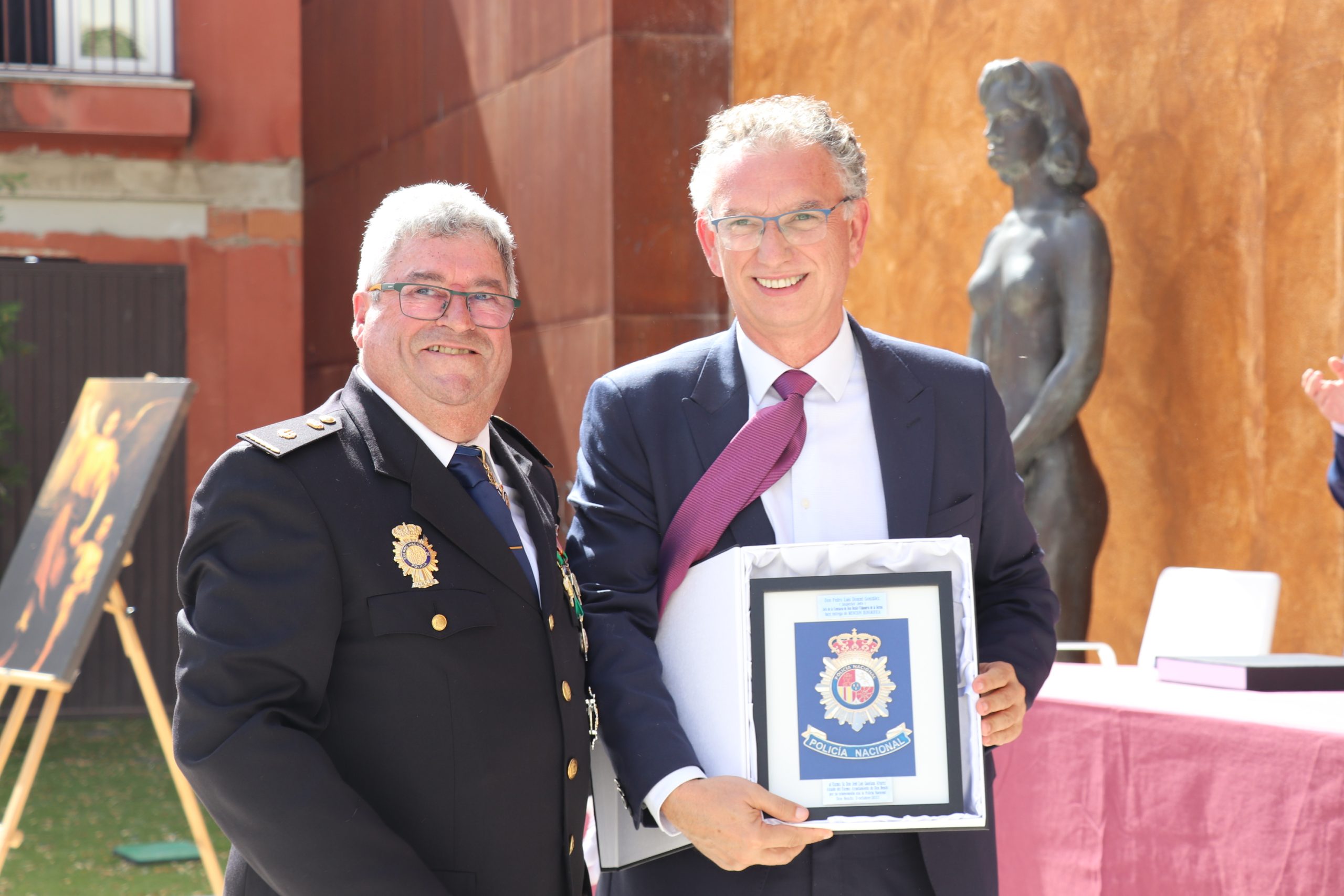 Además, y como reconocimiento a toda la labor que Pedro Doncel ha realizado en sus años de servicio, tanto agente como inspector, ha recibido una insignia de la ciudad de Villanueva de la Serena y de Don Benito, concretamente la sirena y el escudo respectivamente.