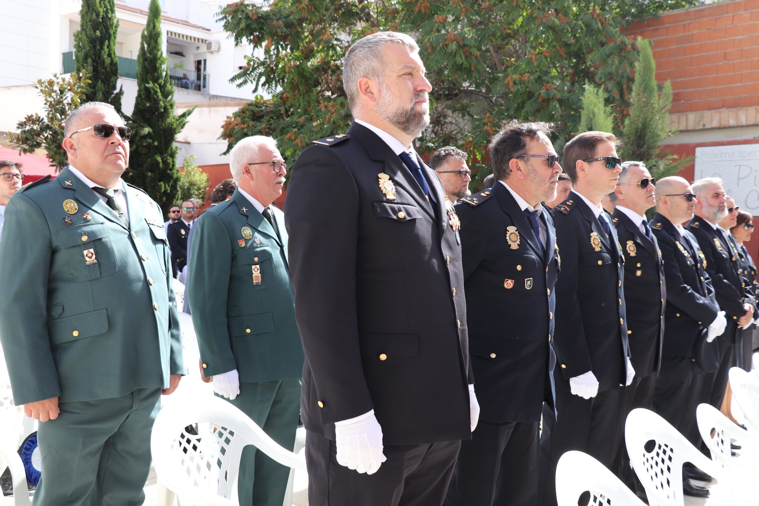 El Cuerpo Nacional de Policía celebra un año más, la festividad de su patrón, los Santos Ángeles Custodios, este martes 4 de octubre. En esta ocasión, se ha celebrado en la plaza del Museo en Don Benito, en el que asisten representantes de las Fuerzas y Cuerpos de Seguridad del Estado, Protección Civil, Cruz Roja, representantes judiciales, el alcalde de Villanueva de la Serena Miguel Ángel Gallardo así como el alcalde de Don Benito, José Luis Quintana.