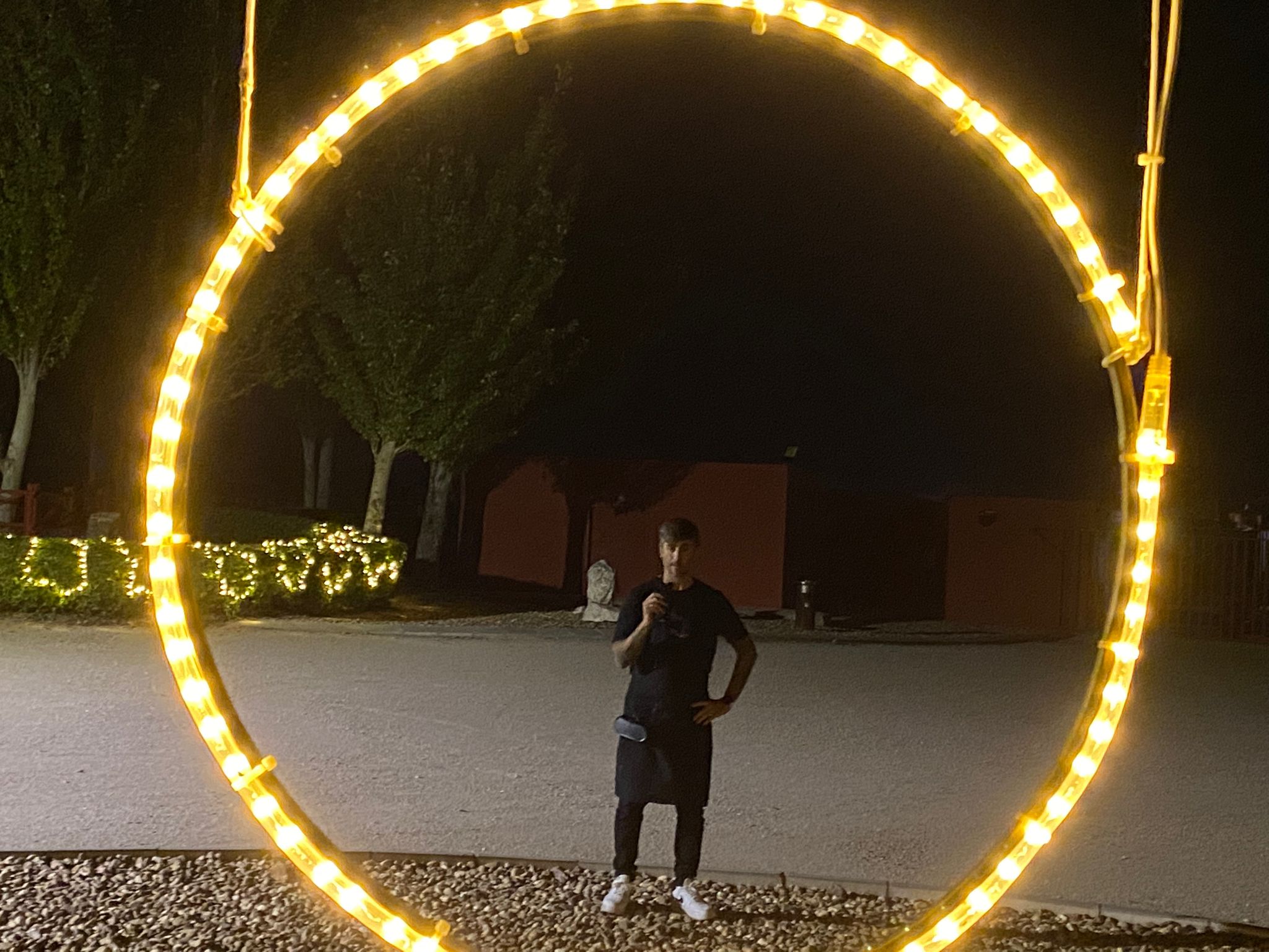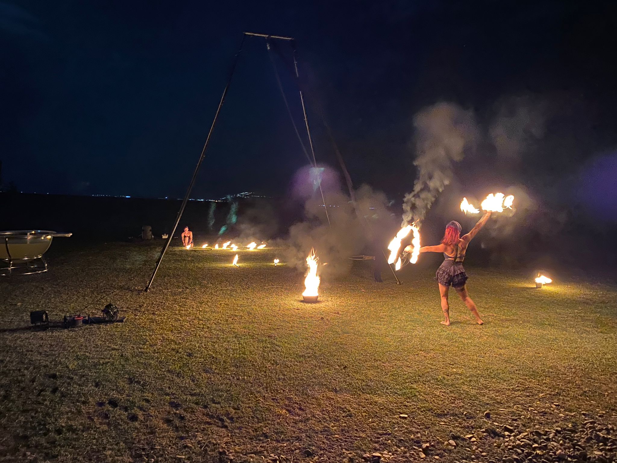 Un total de 40 personas disfrutaron de esta actividad que comenzó en un autobús que les acercó a este paraje, que previamente no conocían. Una vez allí, pudieron degustar cuatro tapas diferentes y cataron cuatro vinos y el postre a cargo del chef Nicolás Gómez, del restaurante Mandukar, que hizo disfrutar con su gastronomía a todos los presentes. Al tiempo que se llevó a cabo un espectáculo de acrobacias aéreas, espectáculo visual de pirotecnia, técnicas circenses y contorsionismo a cargo de la compañía extremeña Artimaña.