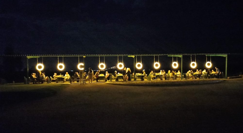 Un total de 40 personas disfrutaron de esta actividad que comenzó en un autobús que les acercó a este paraje, que previamente no conocían. Una vez allí, pudieron degustar cuatro tapas diferentes y cataron cuatro vinos y el postre a cargo del chef Nicolás Gómez, del restaurante Mandukar, que hizo disfrutar con su gastronomía a todos los presentes. Al tiempo que se llevó a cabo un espectáculo de acrobacias aéreas, espectáculo visual de pirotecnia, técnicas circenses y contorsionismo a cargo de la compañía extremeña Artimaña.
