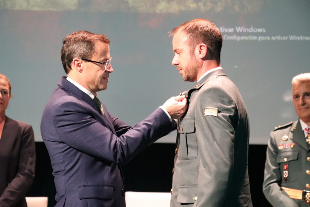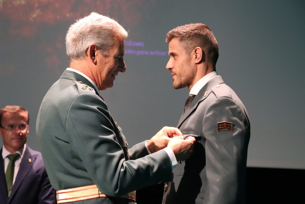 Y las menciones honoríficas por el apoyo, cooperación y colaboración con la Guardia Civil recayeron en Emilio José García jefe de la policía local de Don Benito,Raúl Díaz subinspector de la policía local de Villanueva de la Serena, Eva Guerrero Letrada de la Administración de Justicia del Juzgado de 1ª Instancia e Instrucción número 3 de Don Benito y Pedro Antonio Pérez del Club de Tiro Olímpico “La Vegilla” de la localidad de Don Benito.