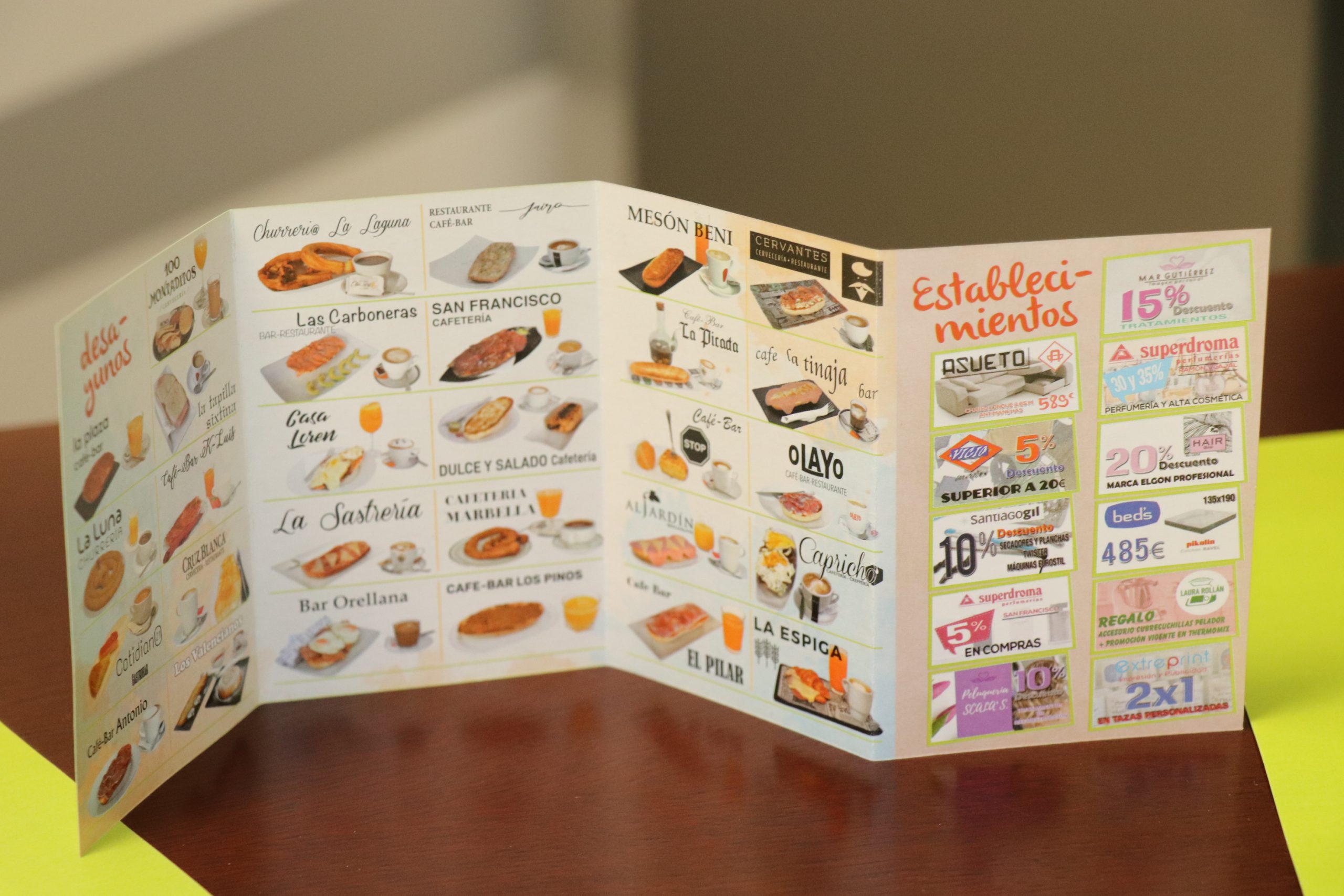 Los establecimientos participantes contarán con un cartel general que los identifica además de una cartilla, en la que aparecerán todos los desayunos disponibles en la campaña, un apartado para sellar los desayunos que se van consumiendo y los cupones promocionales del comercio.